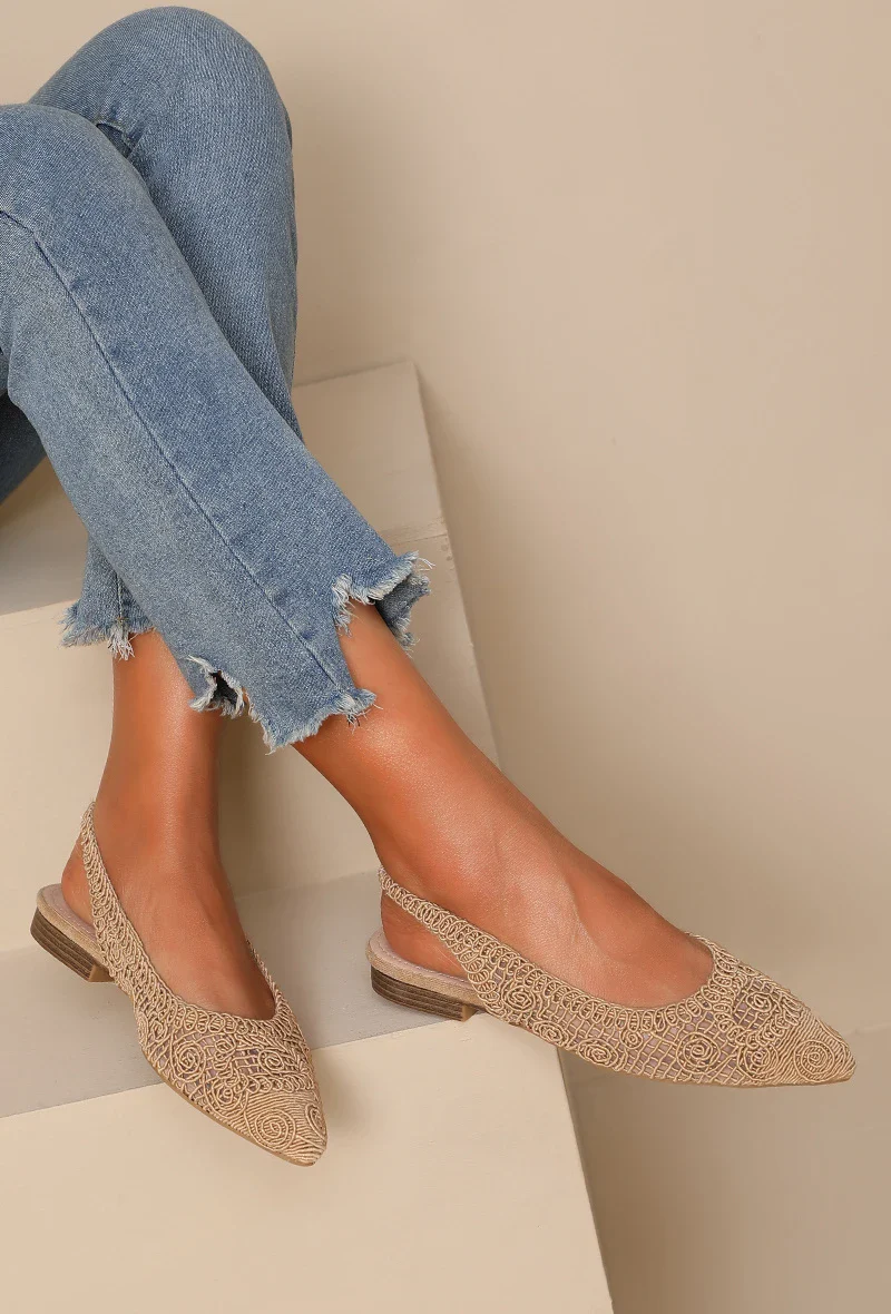Ballerines à bride arrière ajourées Kaki à bout pointu