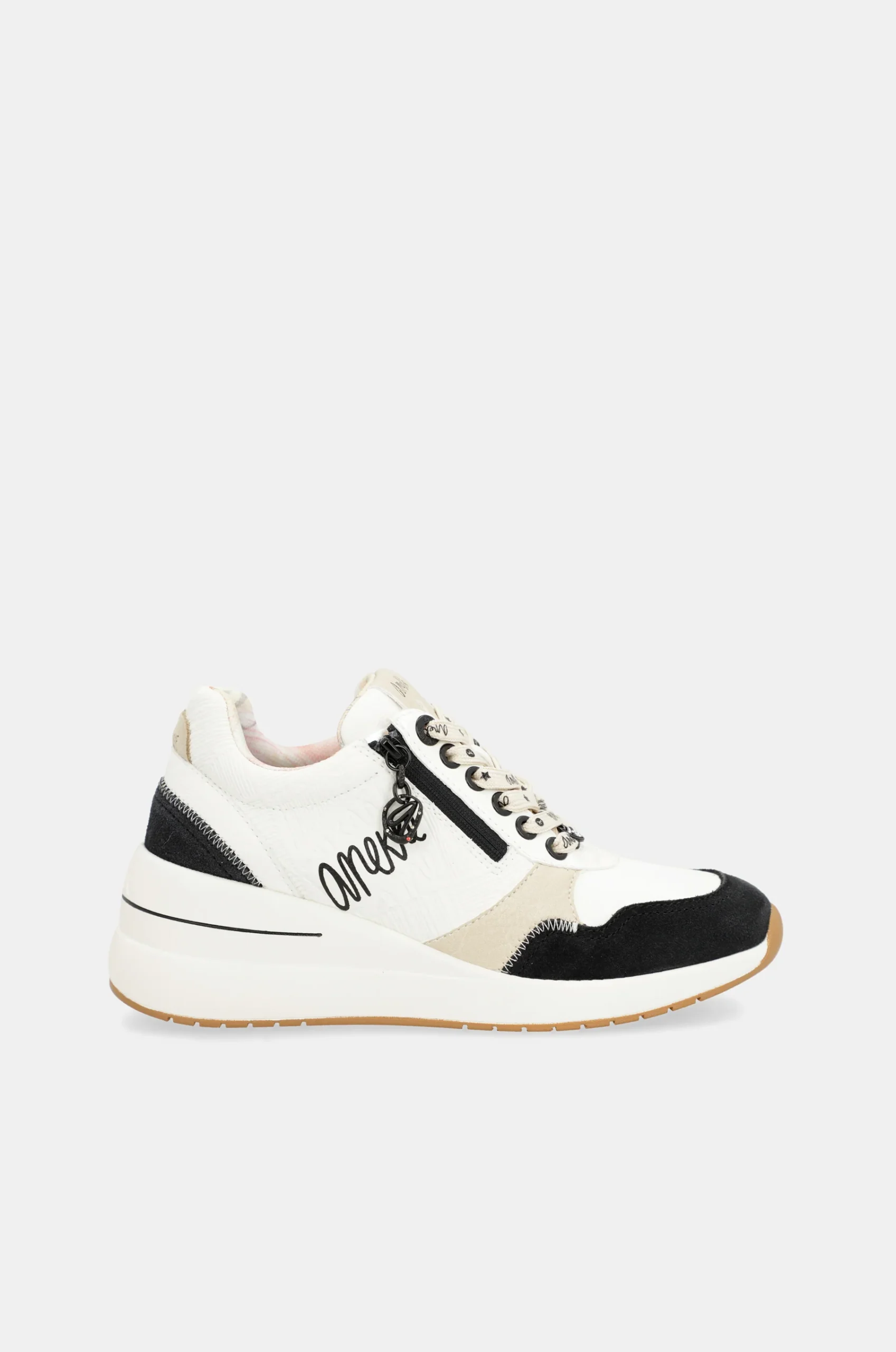 Pour aller travailler. Pour marcher. Pour danser. Pour tout ce que vous voulez ! Ces baskets à semelle compensée noires et blanches d’Anekke vous accompagneront partout ! Elles sont dotées d’une fermeture éclair et de lacets qui garantissent un meilleur maintien. Avec leurs détails intérieurs et extérieurs, elles sont tout simplement parfaites ! Profitez de chaque pas avec vos nouvelles baskets à semelle compensée d’Anekke !