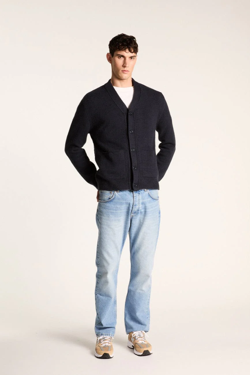 Le cardigan Georgio est une pièce essentielle du vestiaire masculin, pensée pour allier confort et élégance. Tricoté en coton bouclette biologique, il offre une texture douce et agréable au toucher. Sa coupe soignée et son design classique en font un modèle idéal pour les transitions saisonnières. Fabriqué dans les ateliers Montagut au Portugal, il incarne le savoir-faire artisanal et l’engagement durable de la marque.