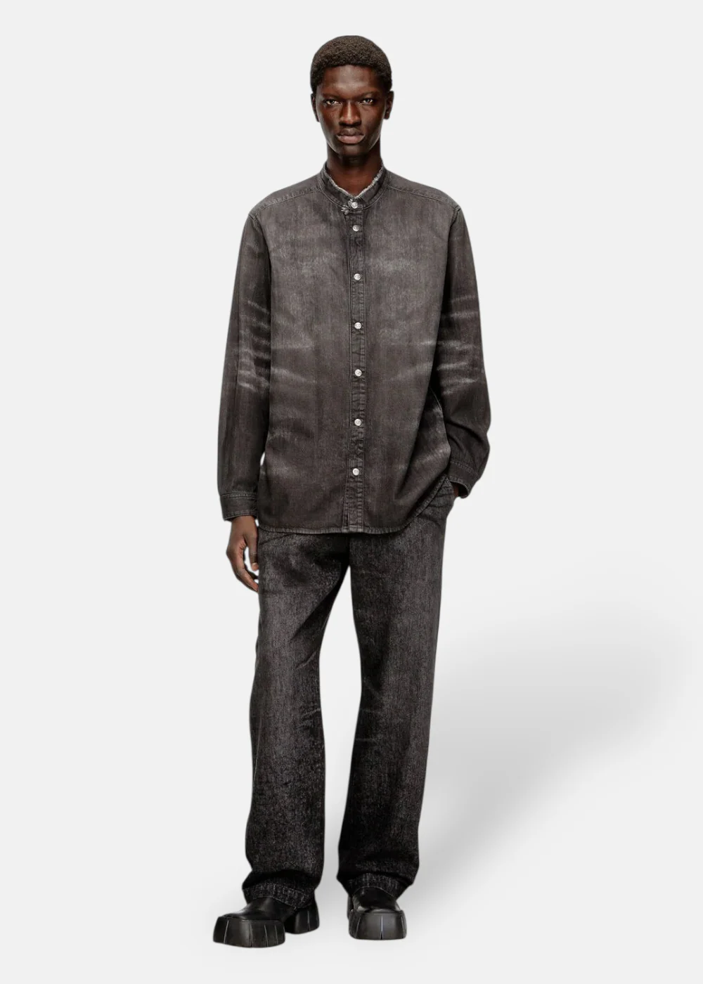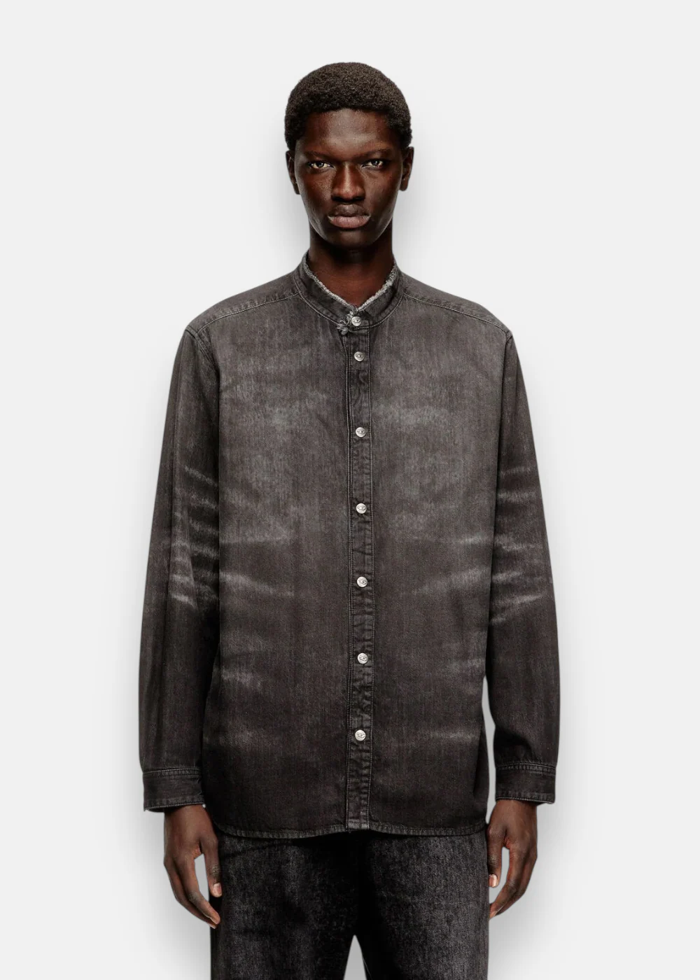 Issue du Runway Show FW25, cette chemise Diesel en denim nid d’abeille associe une coupe épurée à un col mandarin vieilli. Son tissu noir léger, enrichi de Lyocell et modal, est traité en Italie pour offrir un effet vieilli unique avec détails laser. Une pièce mode distinctive, à la fois moderne et intemporelle.