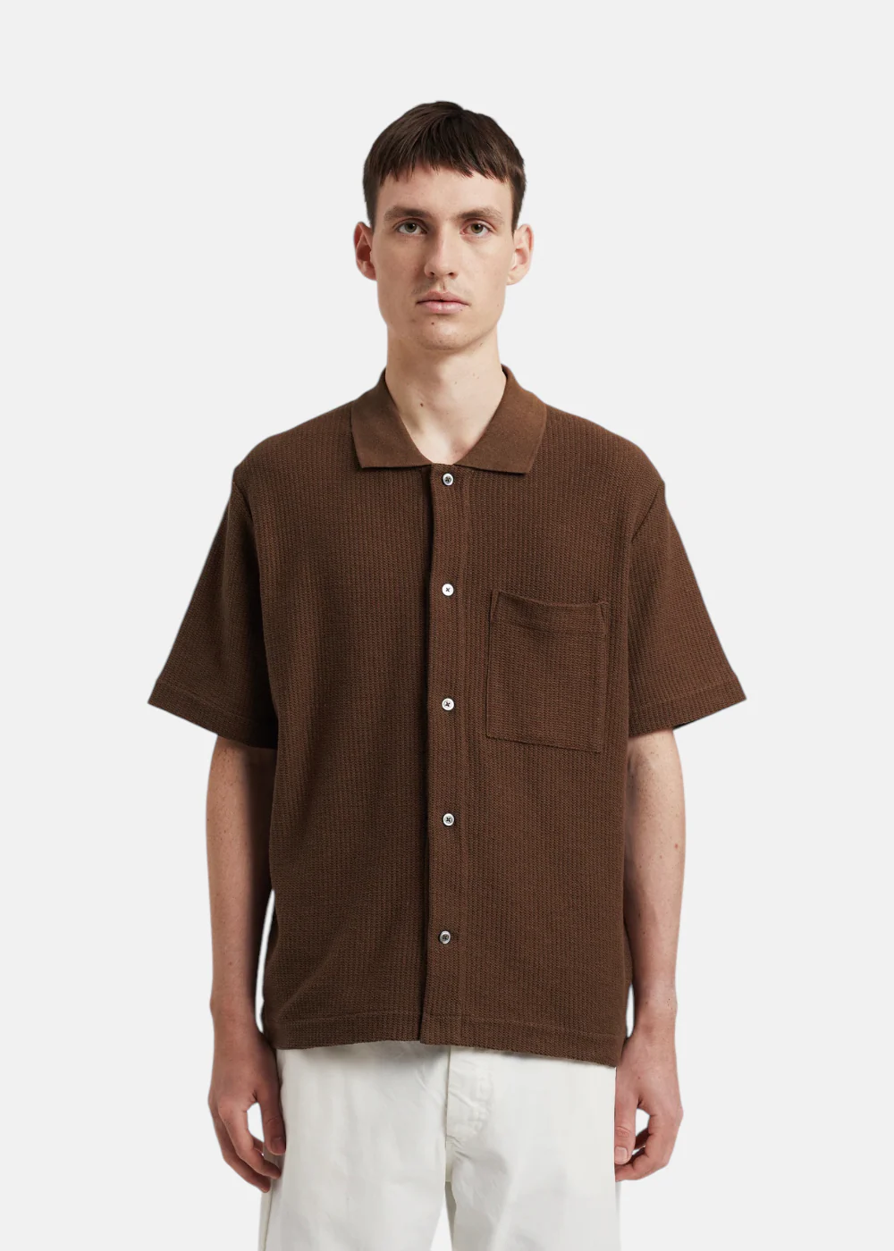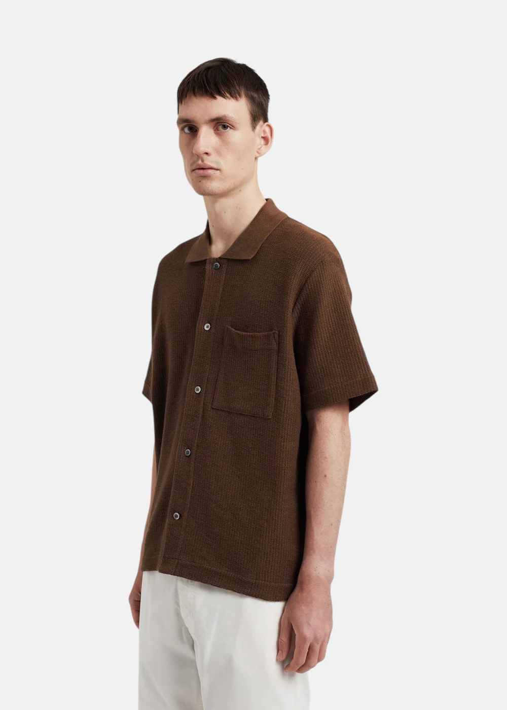 Chemise à manches courtes, coupe décontractée, en jersey épais et respirant. Dotée d’un col tricoté, d’une poche poitrine et d’une patte boutonnée.
