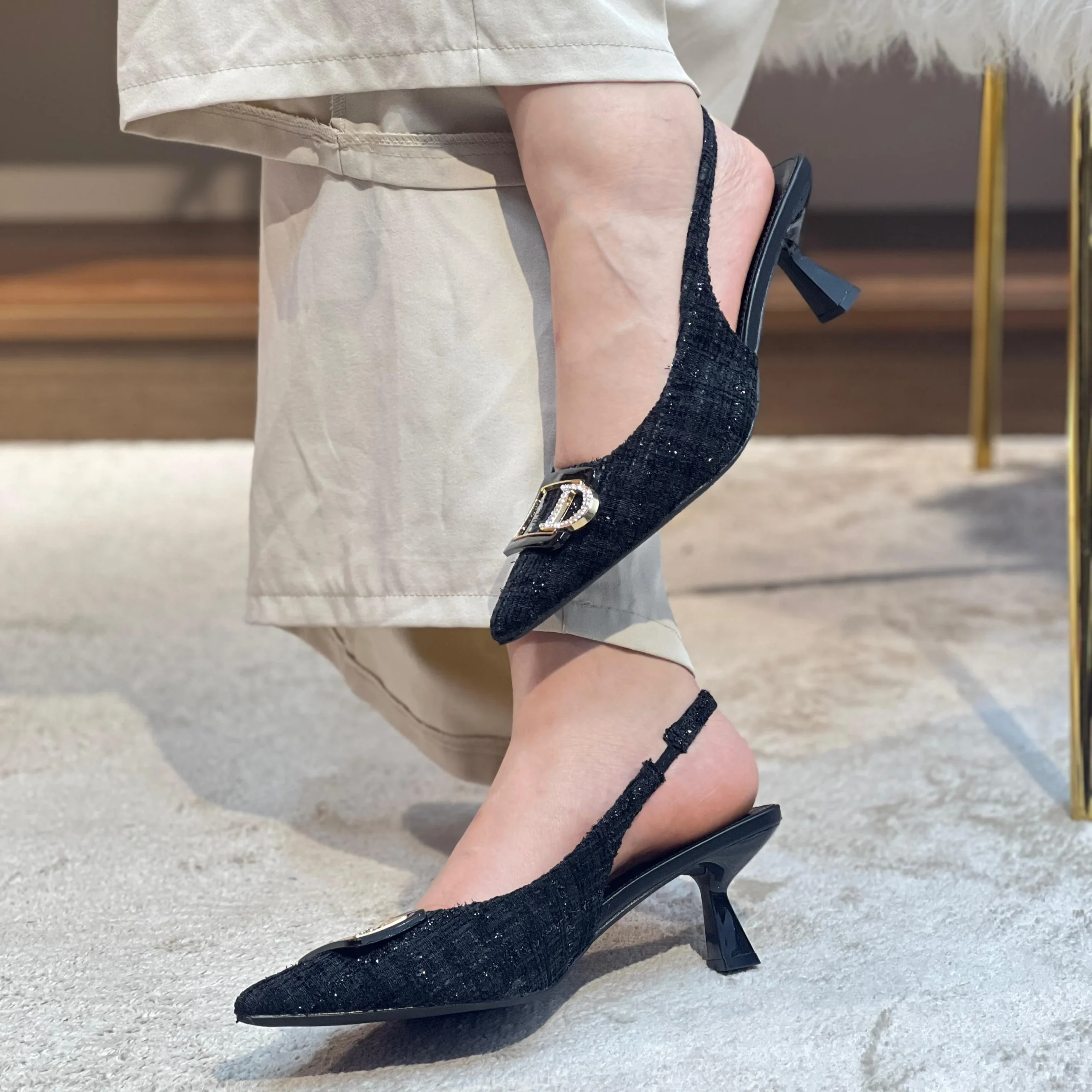 Escarpins à Motif Doré Élégants