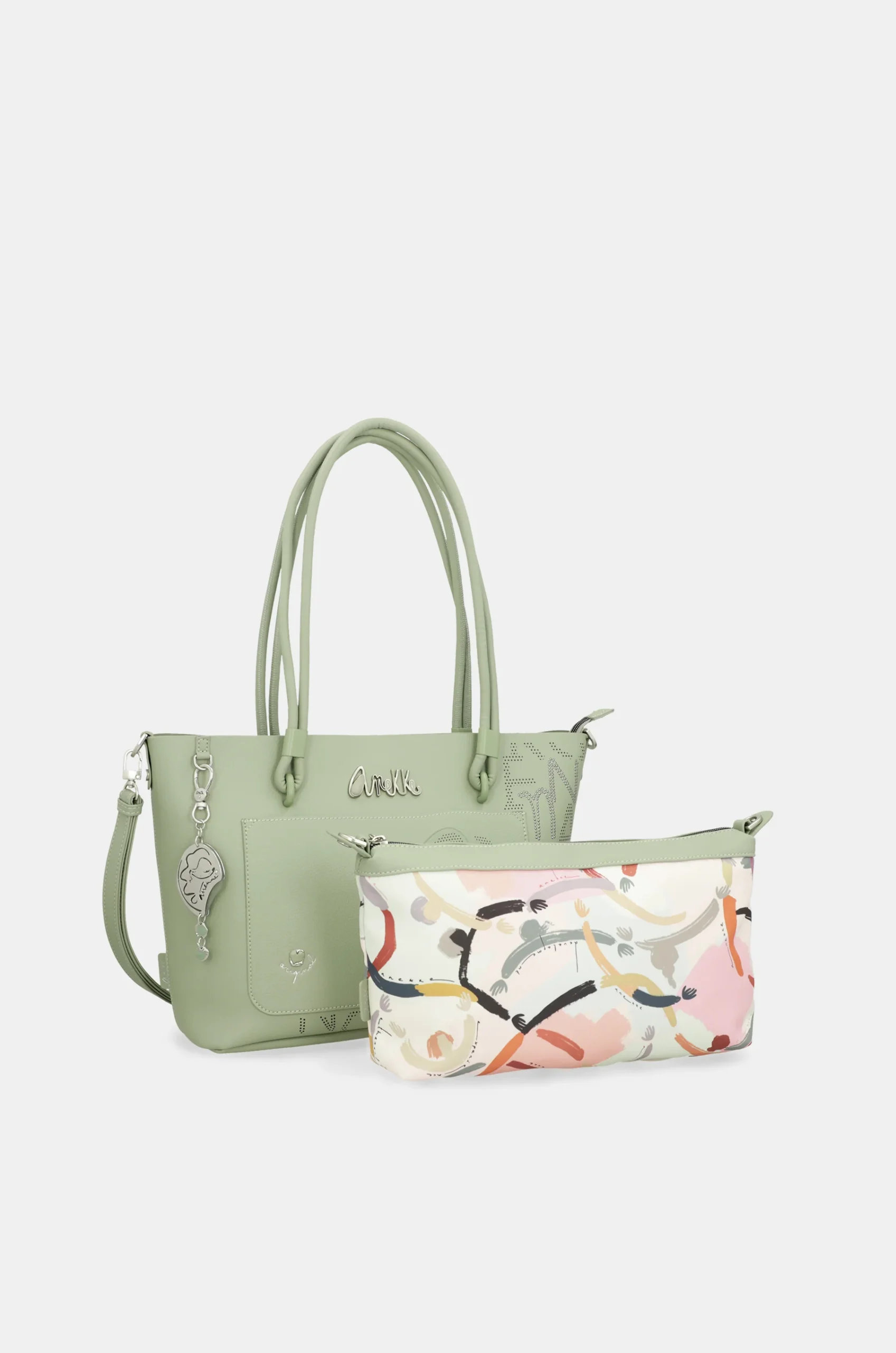 Ce produit fait partie de la ligne Original. Cette collection aux formes droites et au design minimal raconte, à travers ses détails brodés, ses superpositions et ses pins, l’histoire du retour d’Anekke chez elle. Après des années de voyages autour du monde, Anekke revient dans son foyer pour se retrouver elle-même, dans sa meilleure version : la version originale. C’est une ligne qui allie confort et polyvalence, avec une attention minutieuse portée aux détails. Ce modèle shopper original et de grande taille est un véritable 2 en 1. Vous pourrez l’utiliser au quotidien comme vous le souhaitez. Il s’agit d’un vaste sac shopper à l’intérieur duquel se trouve un sac amovible. Le sac shopper est équipé de deux anses pour le porter à la main, mais vous pouvez également ajouter une bandoulière réglable en longueur. Ce sac à bandoulière peut également être intégré au sac qui sert de doublure intérieure : vous aurez donc 2 sacs en 1. Le sac intérieur est doublé. Prête à voyager avec l’âme avec Anekke ? Car chaque jour de la vie est une nouvelle aventure pour se retrouver avec sa version la plus authentique, l’originale. Et votre nouveau favori de Anekke Alma vous le rappellera chaque jour !