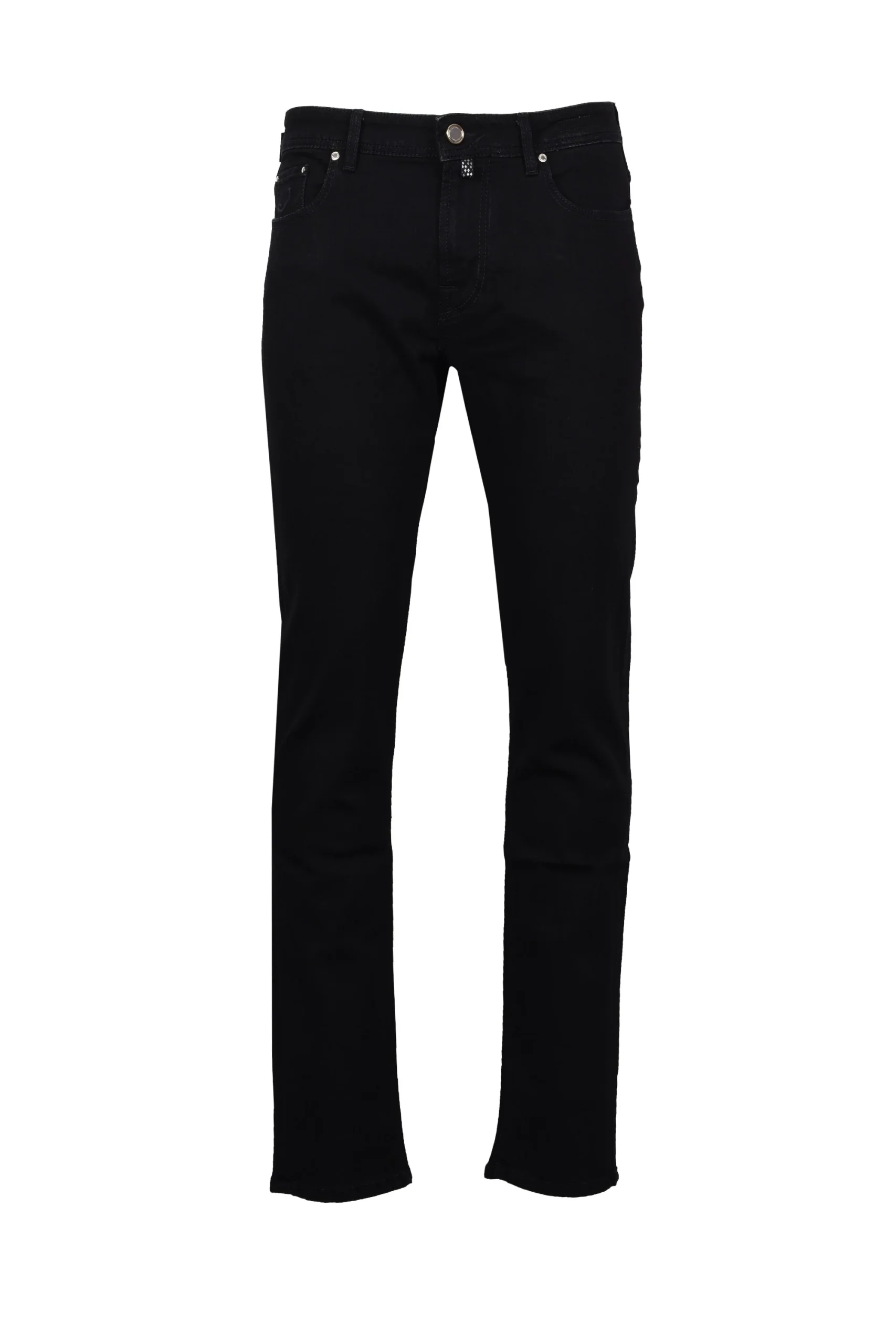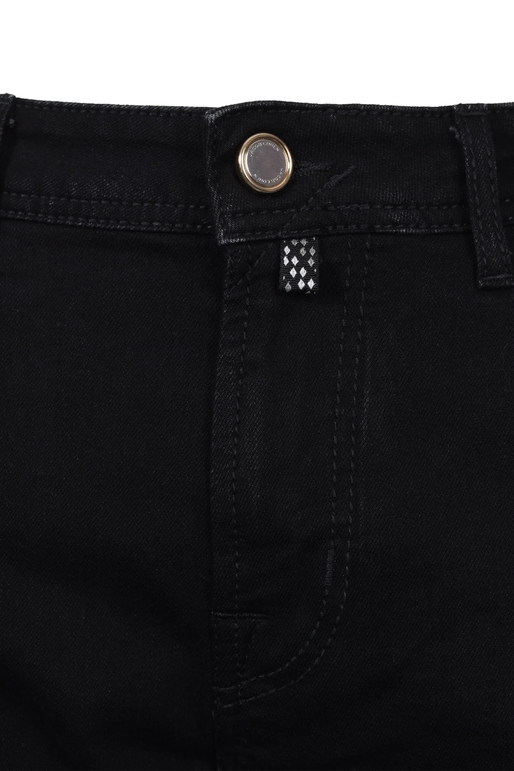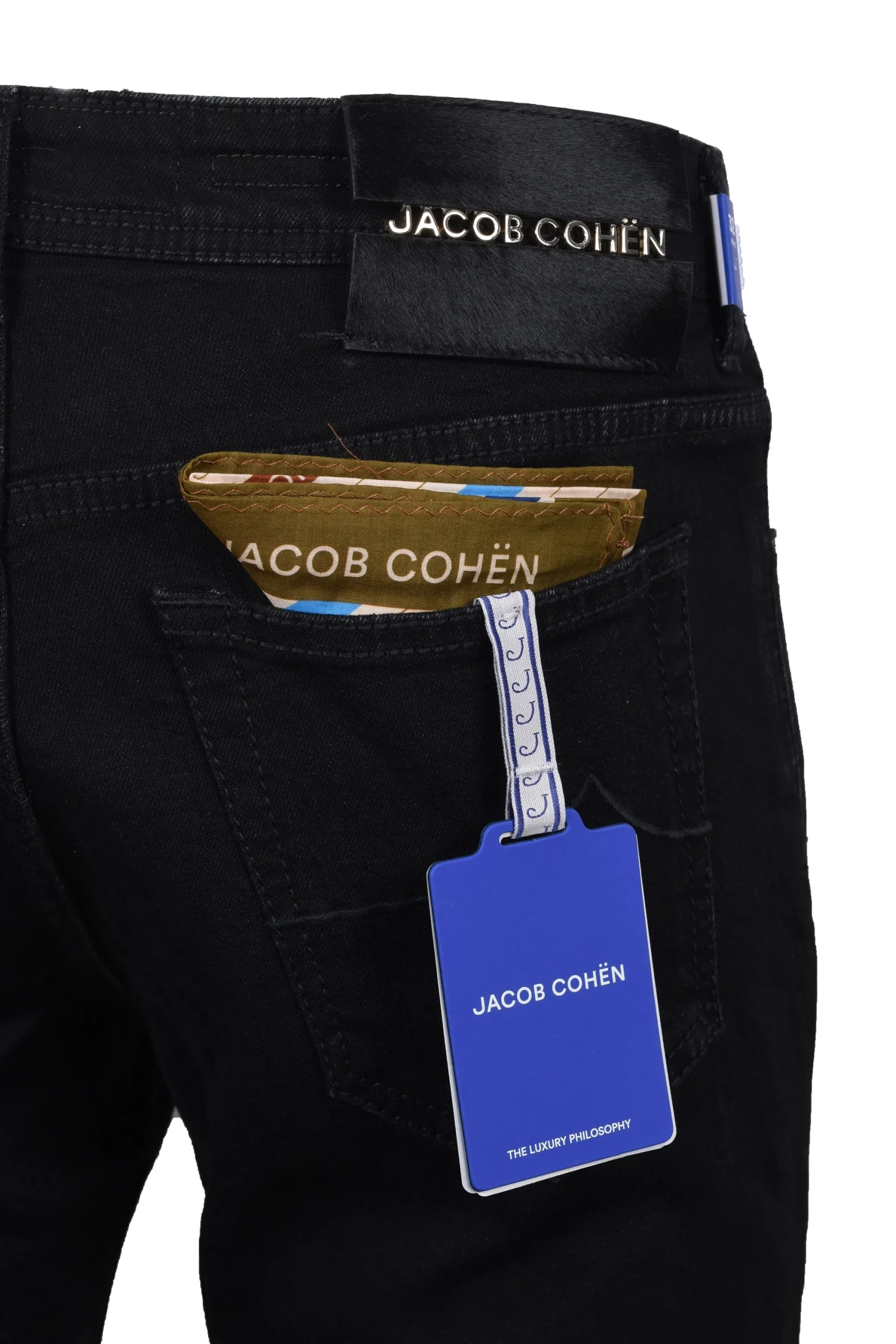 Timeless luxury in denim, the Jacob Cohen Bard jeans boast exceptional quality denim and hardware, carefully crafted and assembled in Italy. This pair boasts a tailored slim fit, high rise. This pair comes in a deep black, perfect for dressing up and for really putting on a show. The contrast gold and silver hardware and sleek black rear belt patch for the ultimate badge appeal. This is Jacobs take on the classic jean, but packed with the design twists and quality like no other pair you’ll ever wear.