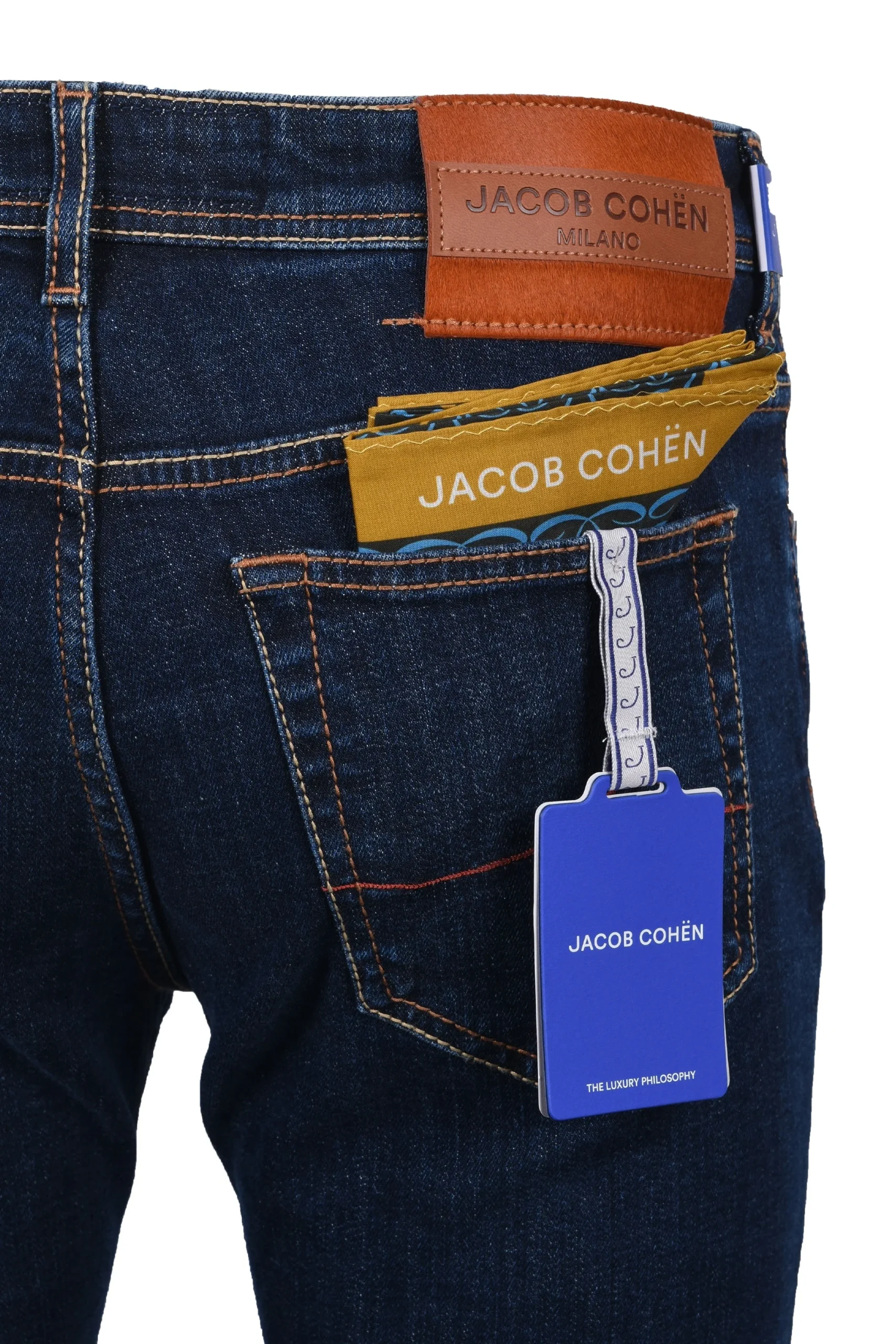 Timeless luxury in denim, the Jacob Cohen Bard jeans boast exceptional quality denim and hardware, carefully crafted and assembled in Italy. This pair boasts a tailored slim fit, high ride and and a stunning classic denim wash with the iconic golden contrast stitching and a tan leather rear belt patch for the ultimate badge appeal. This is Jacobs take on the classic jean, but packed with the design twists and quality like no other pair you’ll ever wear!