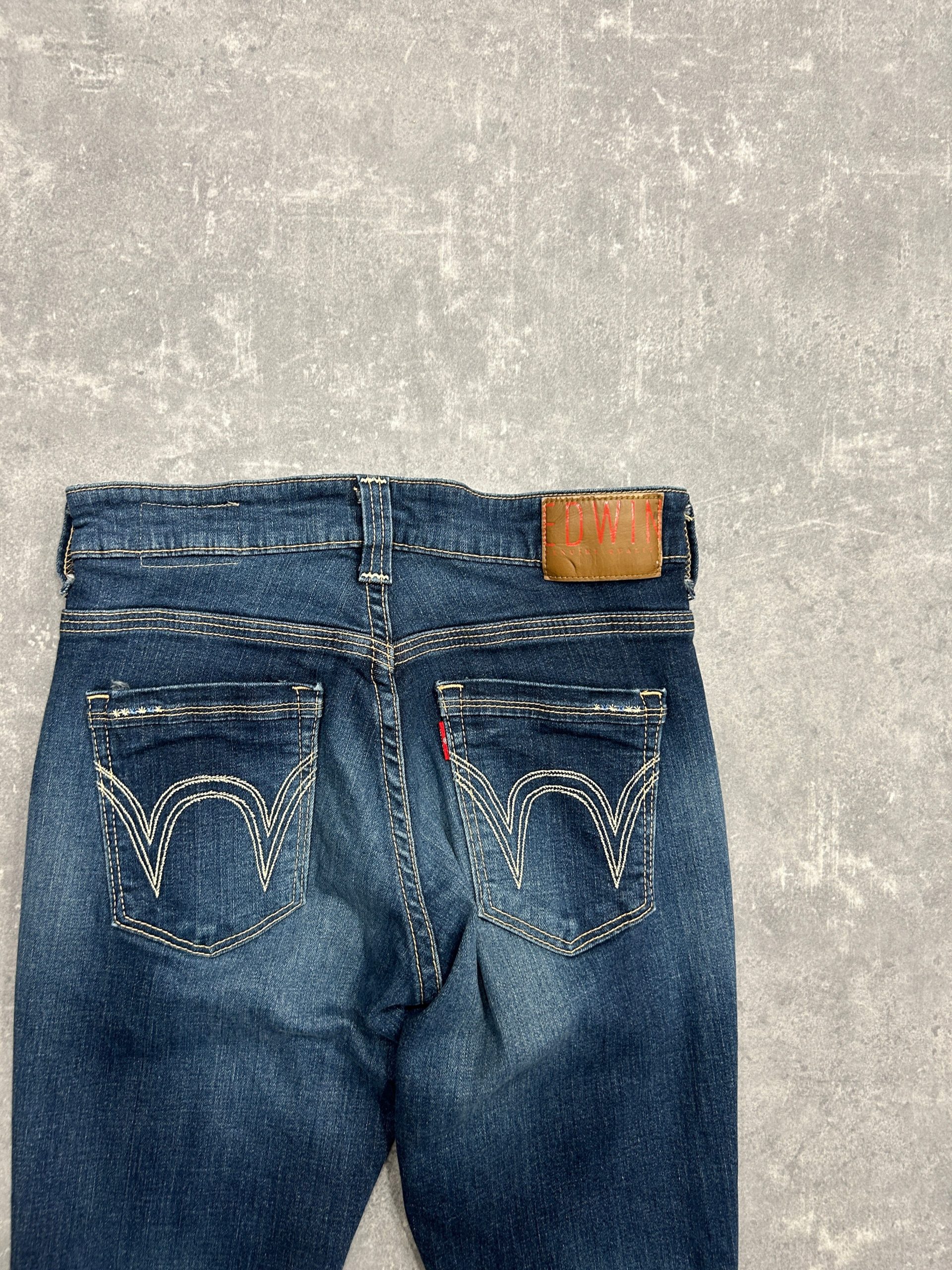 Jean Edwin bleu Taille recommandée : EUR 36 Taille étiquette : M Dimensions : 36 x 95 cm Article de seconde main. Ces jeans proviennent du Japon. n°JF008