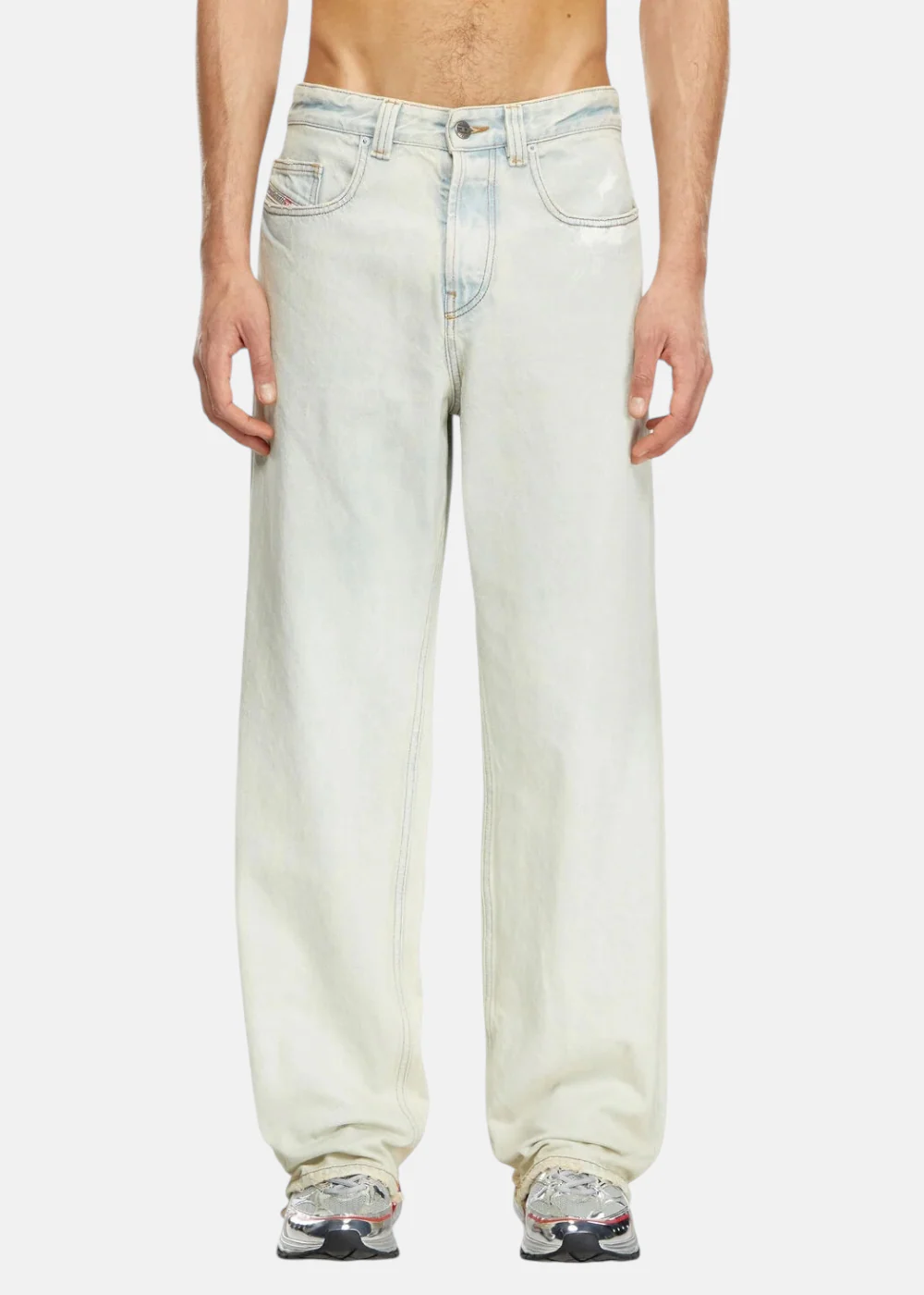 Jeans Diesel 2001 D-Macro Ce jean à coupe relaxed-fit se distingue par sa taille basse, son entrejambe bas, et sa jambe large pour une silhouette ample et audacieuse. La braguette est dotée d’une fermeture boutonnée. Matériaux et détails : Composition : 100 % coton biologique Délavage : Bleu clair avec une finition effet poussière distinctive […]