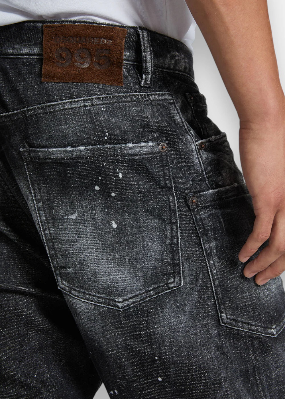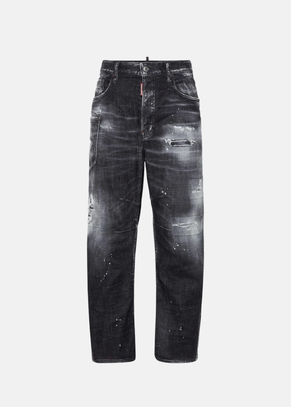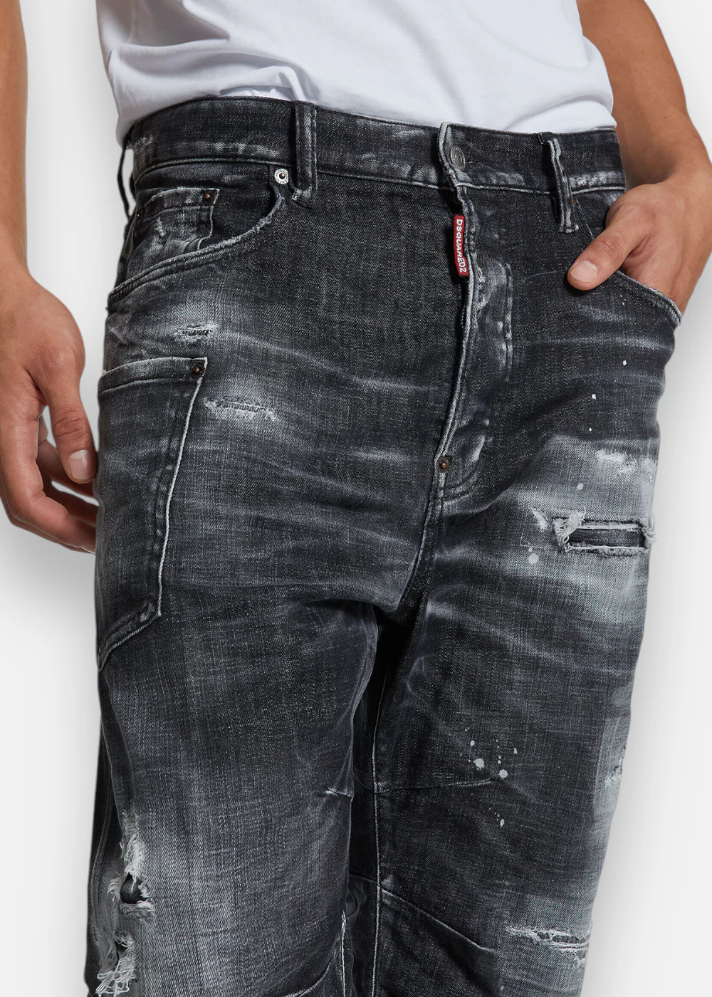 - Finitions : Délavage noir avec détails usés, étiquette et écusson Dsquared2.