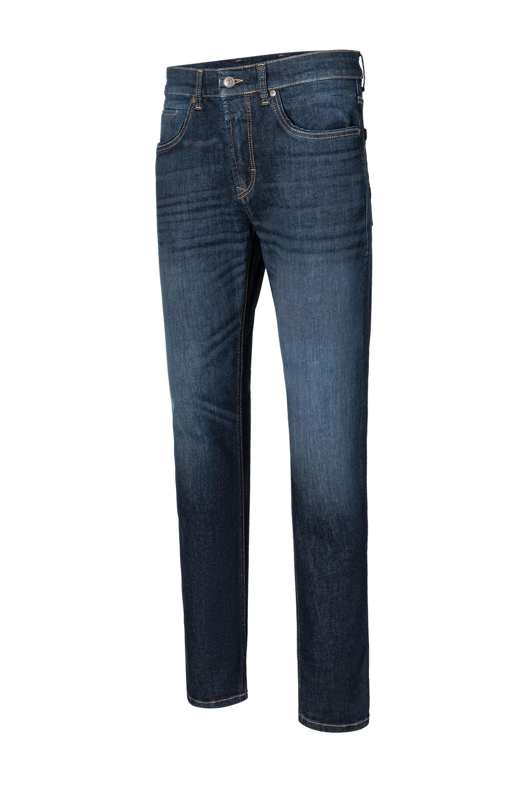 The dark blue wash, enhanced with a masculine, grainy and vintage look, offers versatile styling options. Engineered with high-elasticity stretch denim, these jeans provide exceptional freedom of movement and outstanding recovery, ensuring they maintain their shape wear after wear. The moderate, comfortable rise and straight, slim leg create a flattering modern fit that doesn’t compromise on comfort. Plus, with a material blend featuring organic cotton and cotton sourced from Better Cotton, you can feel good about your choice.