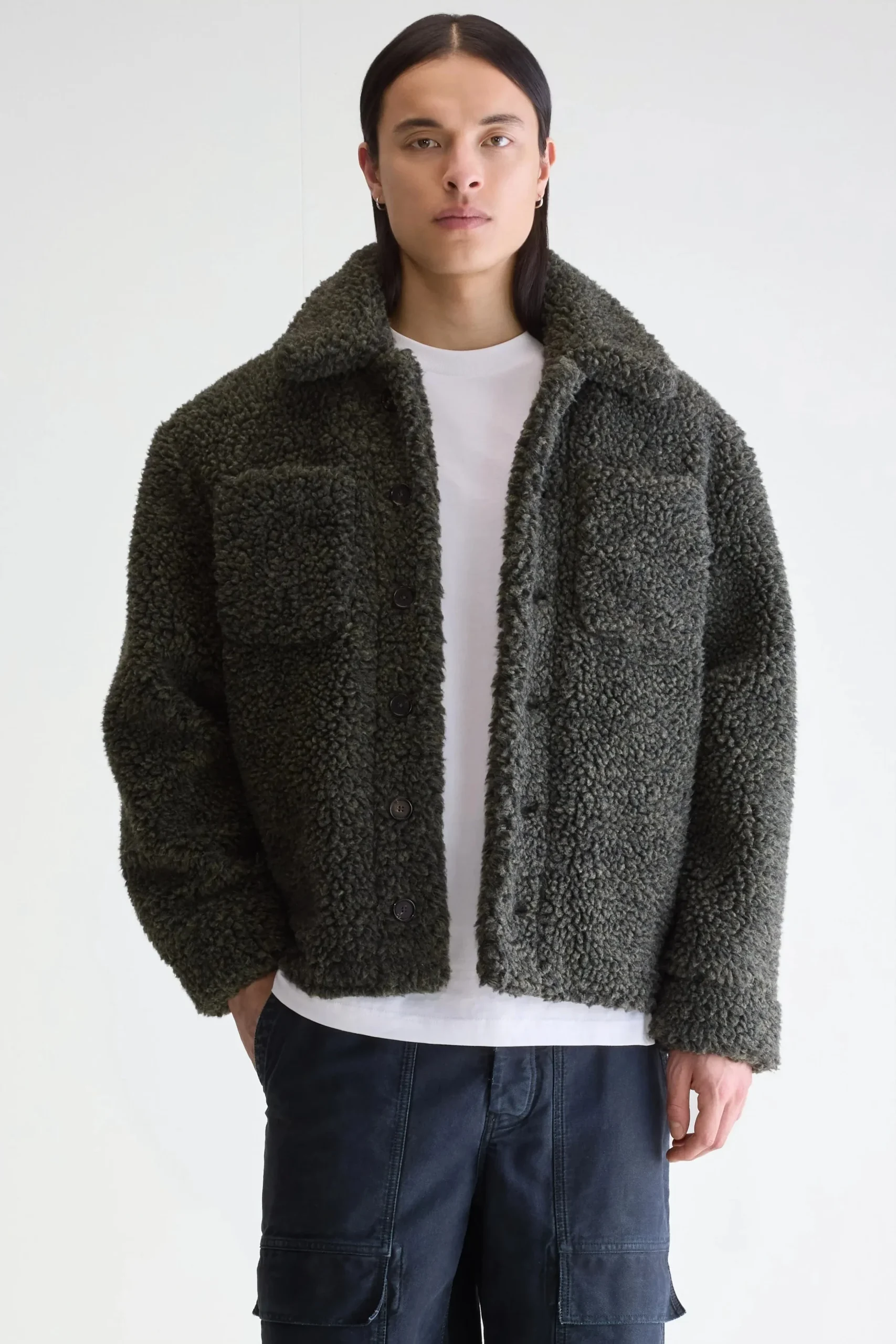 - Style : Teddy moderne, coupe standard, idéal pour un look casual structuré.