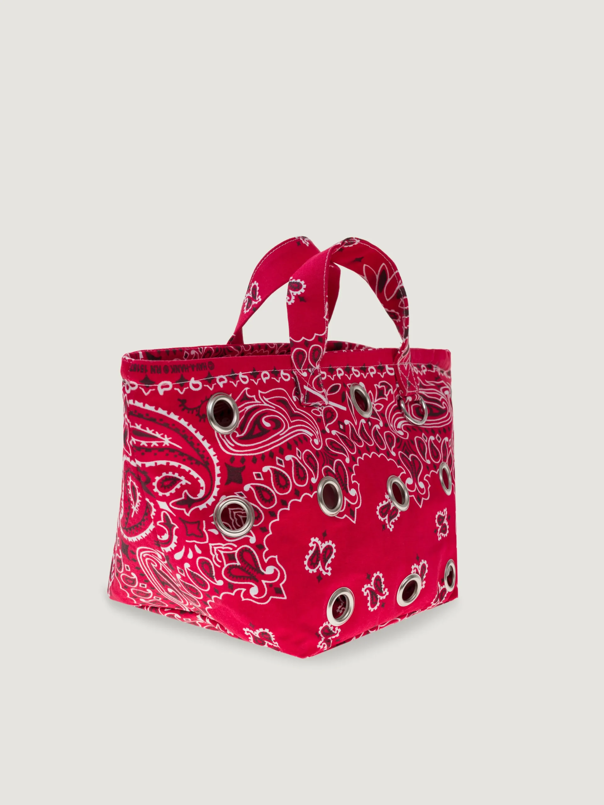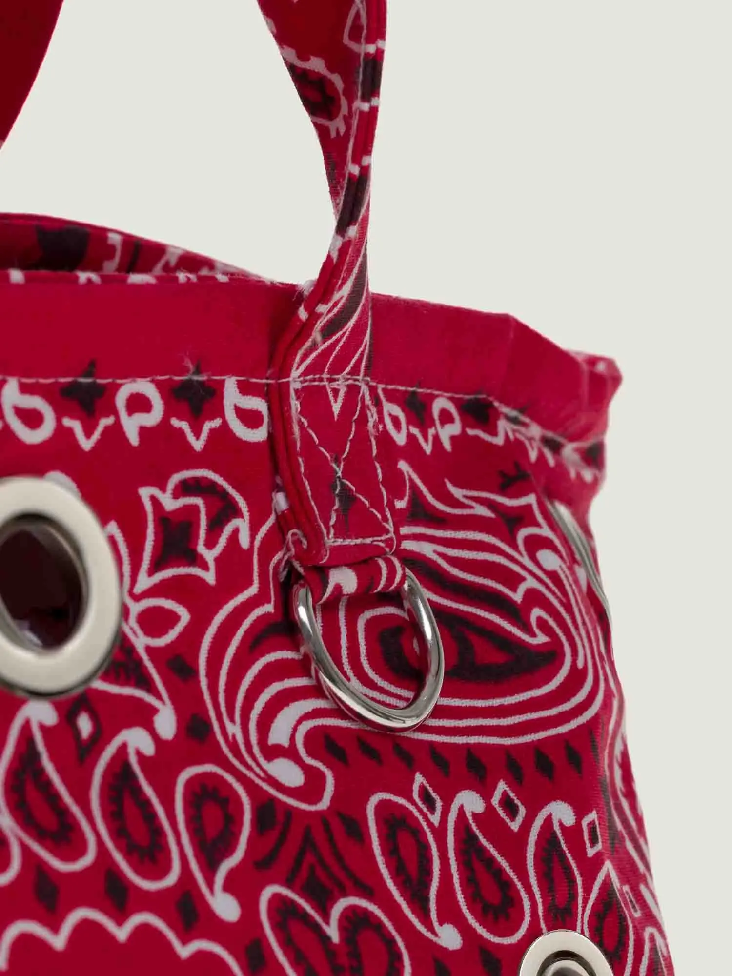 Petit sac panier orné d’œillets, 2 anses pour un porté main, deux petits anneaux pour permettre d’accrocher une bandoulière ou des petits gris-gris.