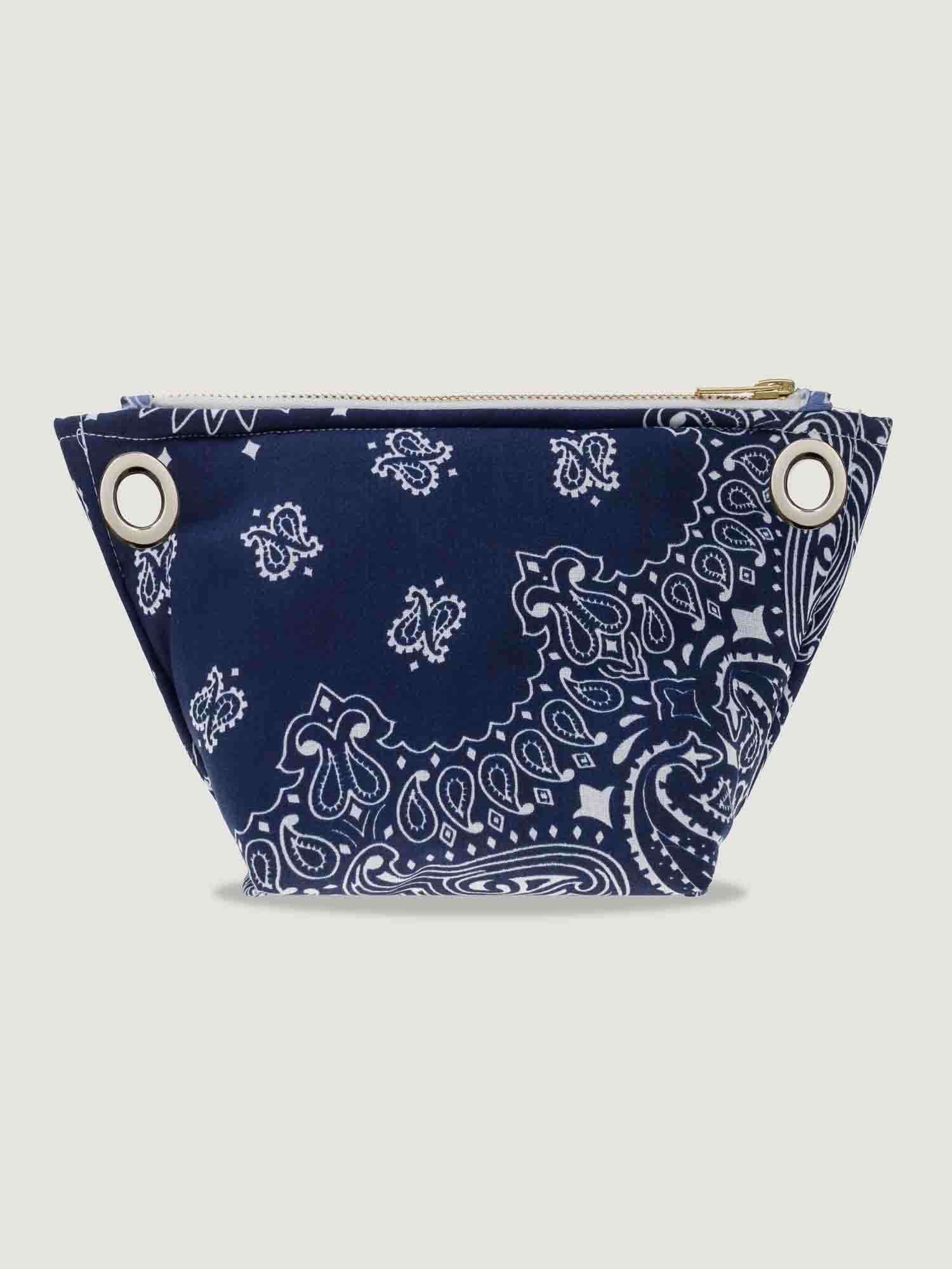 Mini pochette trapèze à œillets, à porter à la main ou avec une bandoulière.
