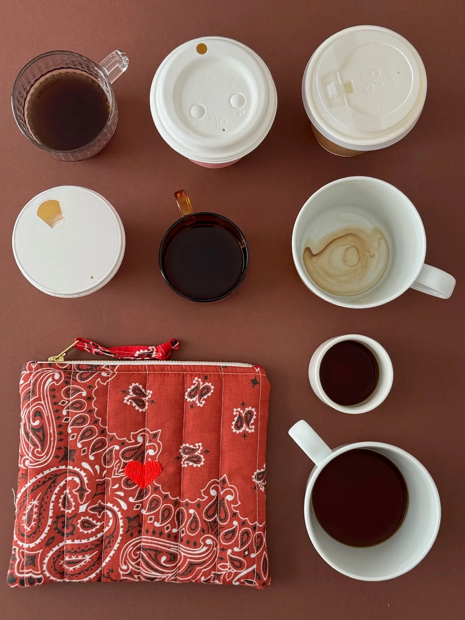 Mini Pochette Zippée Matelassée – COEUR – Vintage Red / Burnt Orange