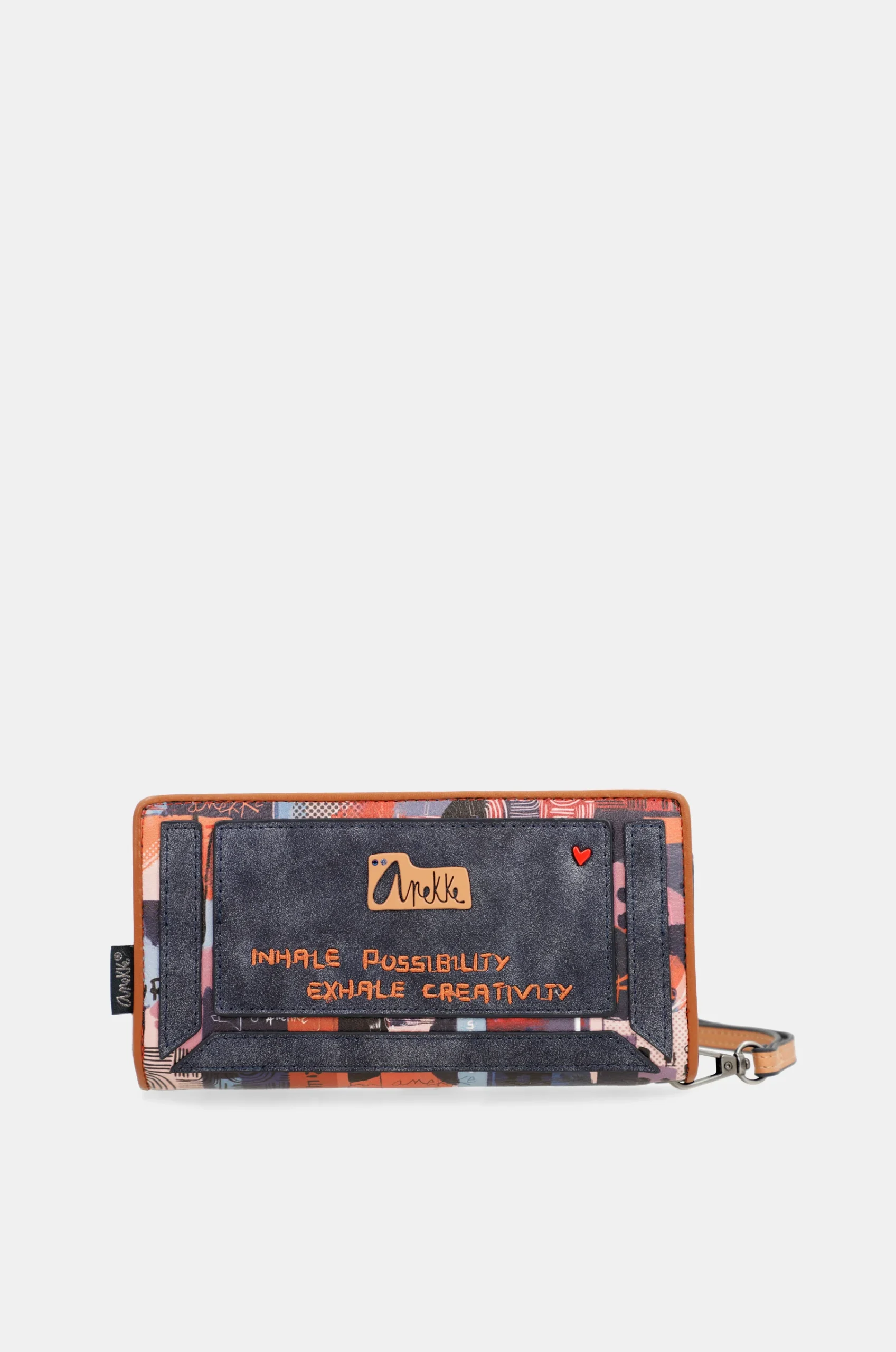 Il s’agit d’un portefeuille de grande taille. Il a deux compartiments principaux: le dos, où vous trouverez un grand portefeuille et un espace pour des notes, des cartes ou des documents. La partie supérieure a une fermeture éclair et à l’intérieur, vous pouvez stocker des pièces. L’intérieur entier est doublé. La ligne Nagare par Anekke Contemporary s’inspire du sens du mot japonais « Nagare » (le flux fluide). Dans cette ligne, Anekke prend comme référence tout ce qui bouge, l’inspire et la déplace lors de ses voyages au Japon, le transformant en imprimés et formats originaux qui s’inspirent de l’architecture japonaise, de la calligraphie et de l’iconographie.