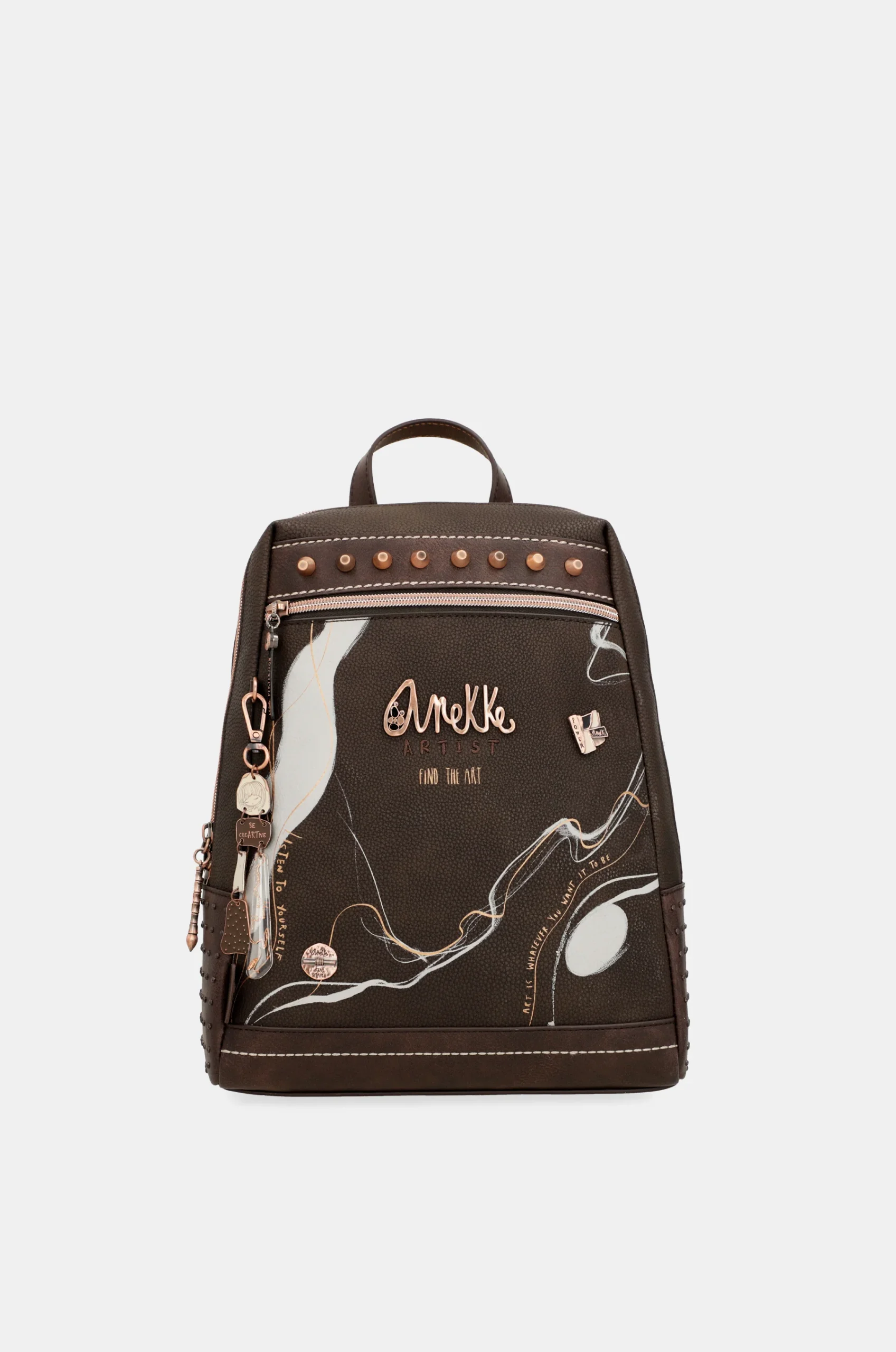 Ce grand sac à dos brun de l’Anekke Nature Shodō est un modèle très confortable, avec une ouverture zippée et une grande capacité intérieure. L’intérieur est doublé et a des poches. Il a également une poche à l’arrière et un autre sur le devant, tous deux avec Zip. Les deux poignées de sac à dos sont réglables à différentes longueurs, et il a une sangle à main.