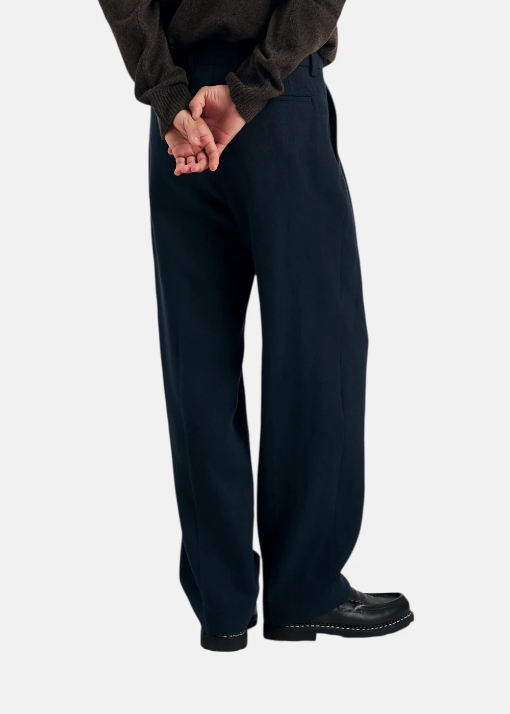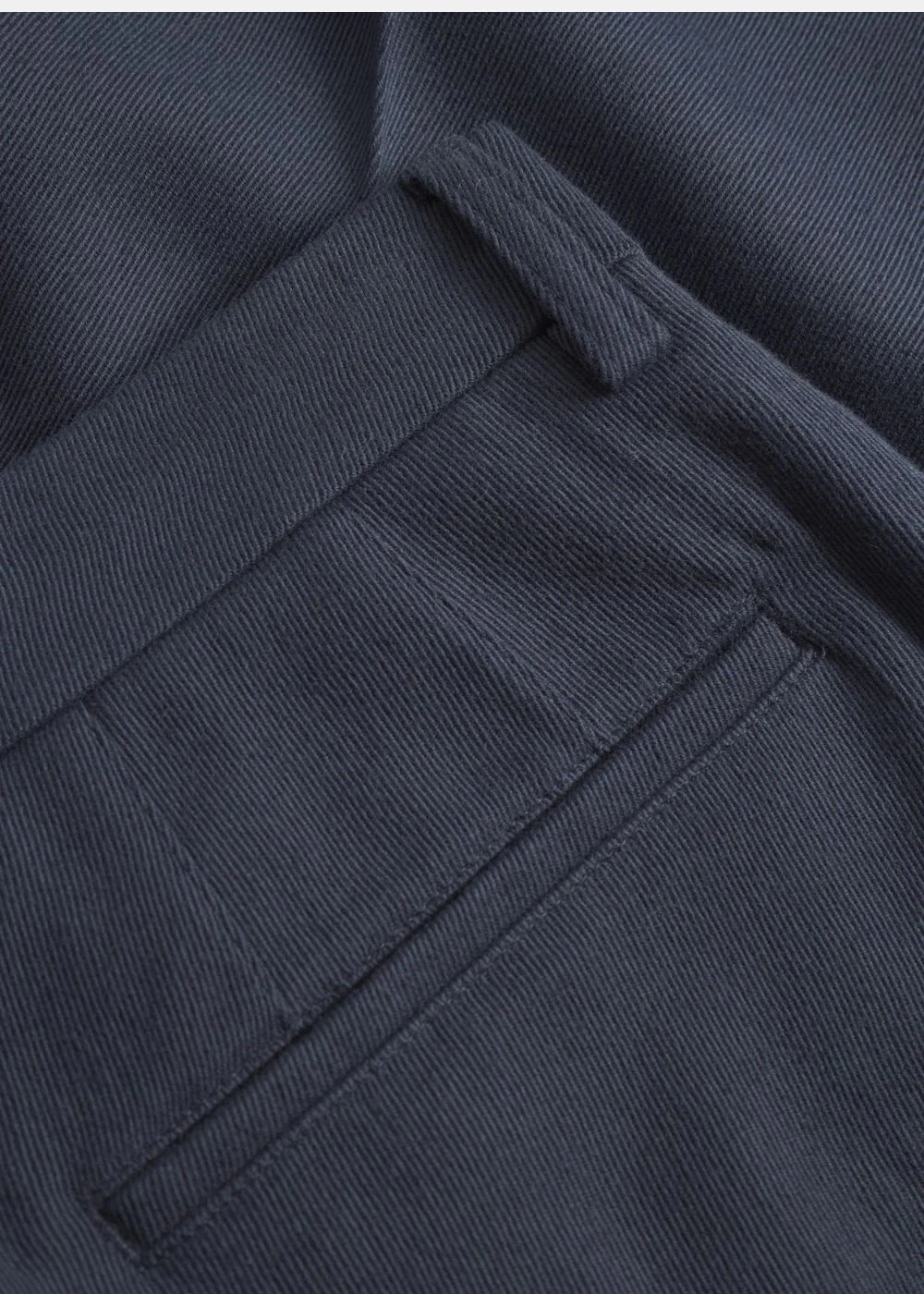 Le Benn Relaxed est un pantalon ample à pinces réalisé dans un cavalry twill italien mêlant coton et laine. La matière, issue du tissage Umberto Lenzi, apporte tenue, confort et une structure parfaitement équilibrée entre souplesse et robustesse. La coupe relaxed, accentuée par deux pinces et une jambe large, assure un tombé naturel et un confort constant tout au long de la journée.