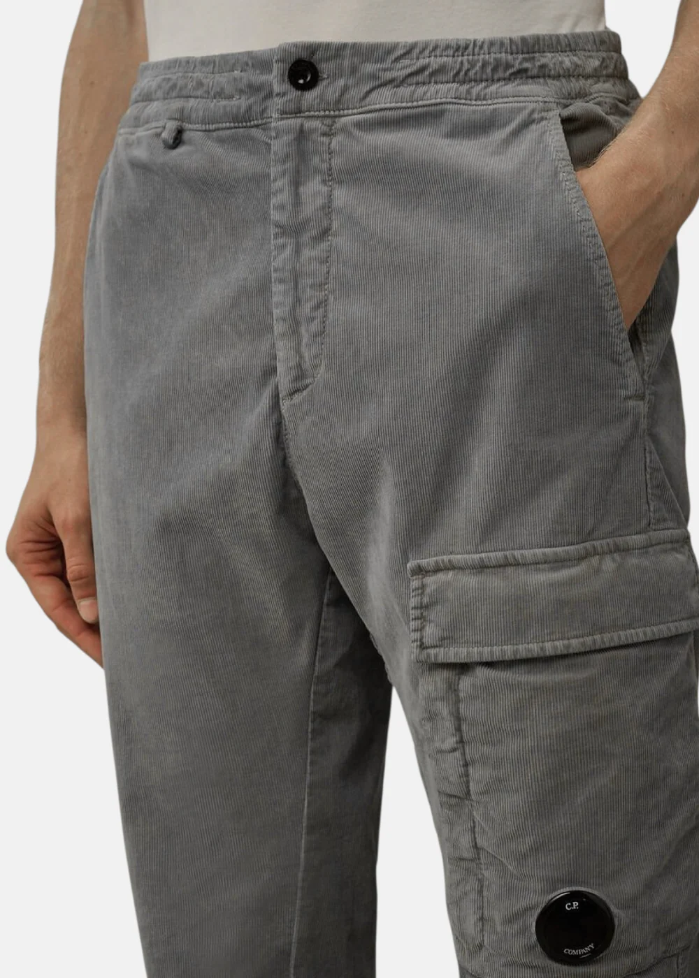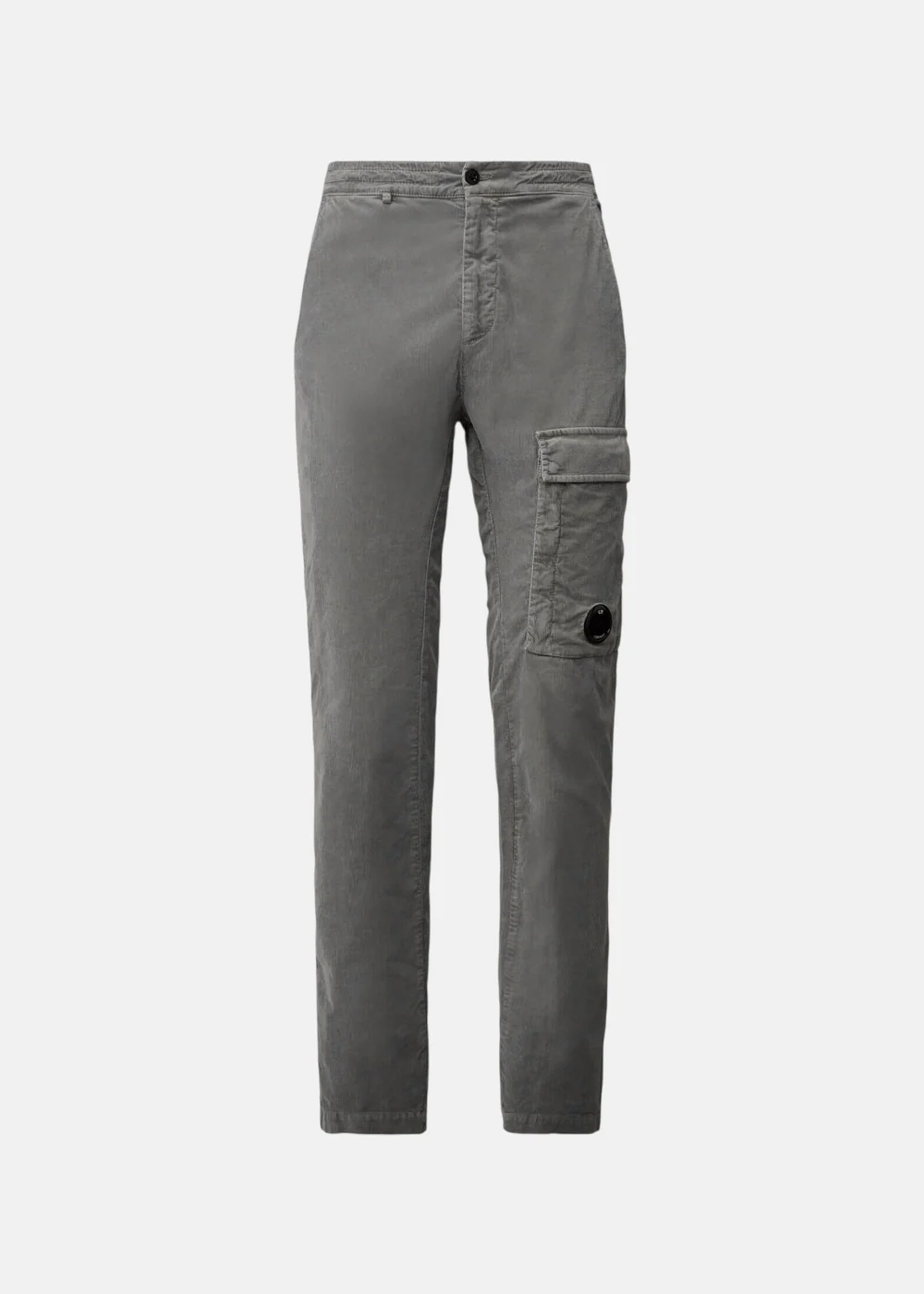Le cargo en velours gris C.P. Company est un pantalon coupe régulière, stretch, avec poches cargo et lentille signature. Un modèle confortable, pratique et texturé pour tous les jours.