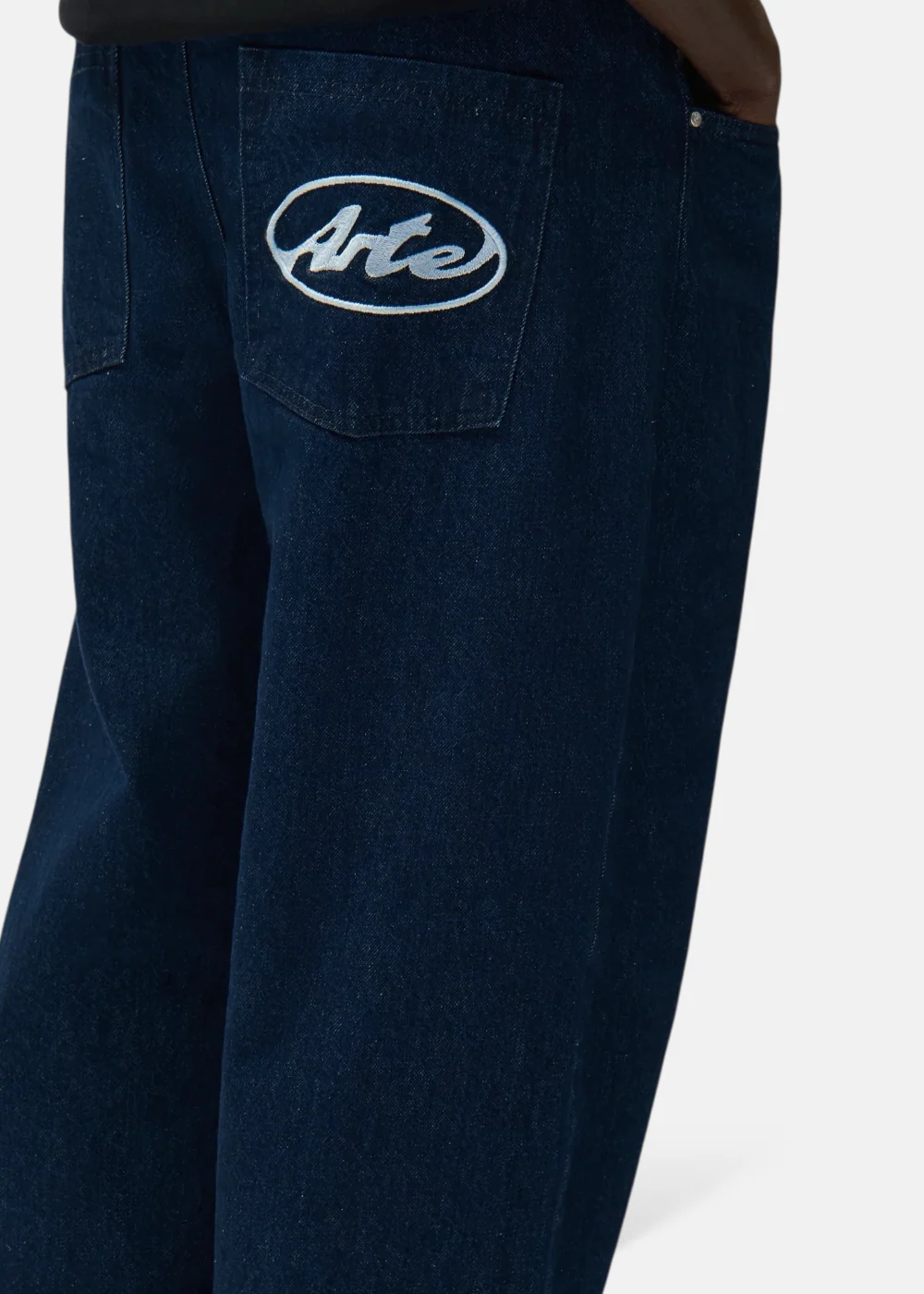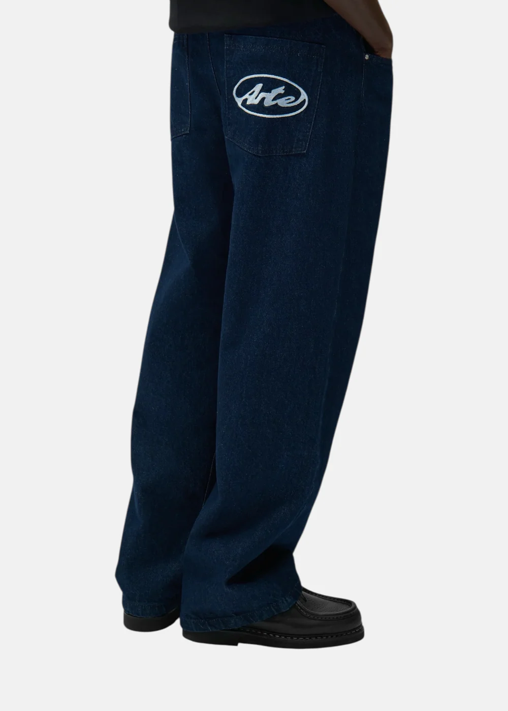 Ce pantalon en denim brut d’Arte Antwerp est le modèle de tous les jours par excellence pour la saison 2026. Il se distingue par son design Circle Logo bleu marine brodé avec soin sur la poche arrière droite. Sa coupe légèrement fuselée mais décontractée offre une silhouette moderne, idéale pour accompagner les pièces fortes de la collection.