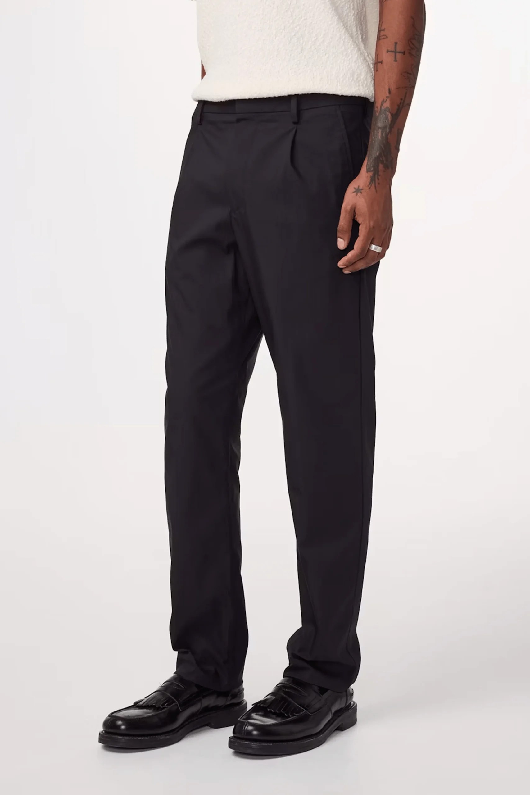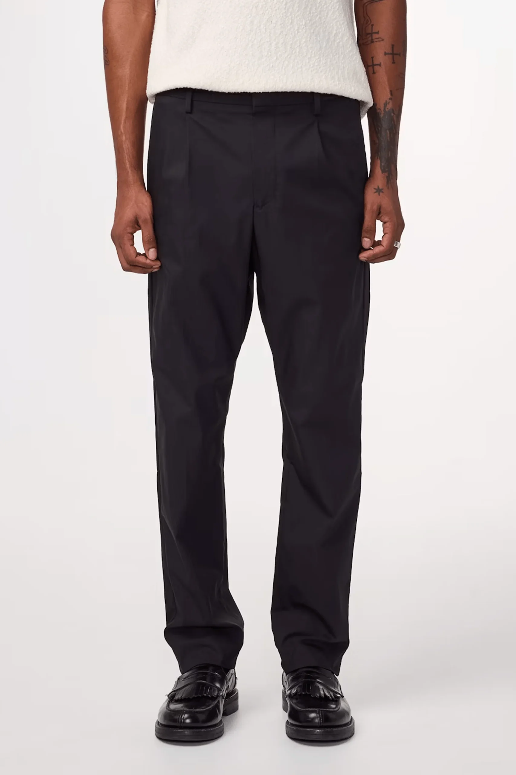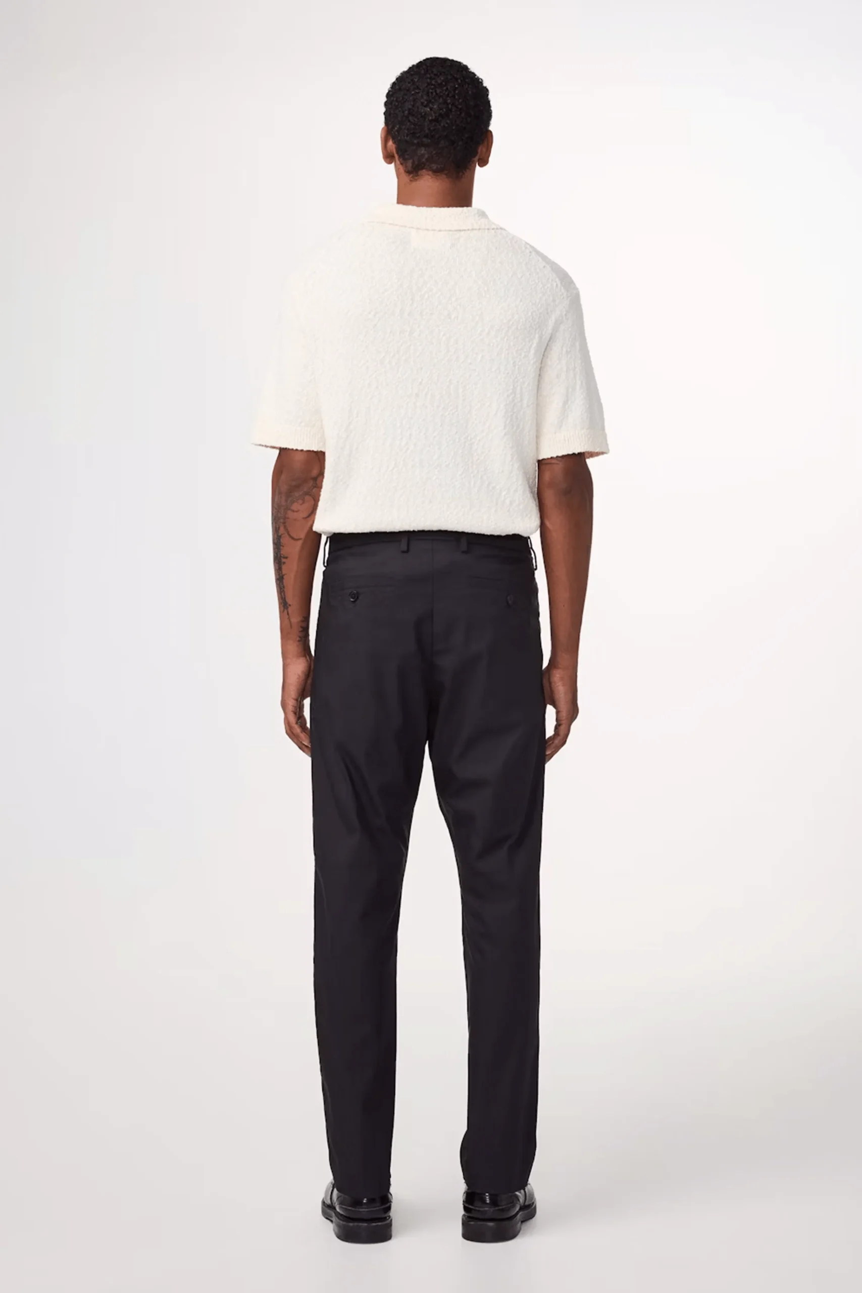 Optez pour un style élégant et décontracté avec ce pantalon cropped à la coupe regular fit et jambes fuselées. Conçu dans un coton léger 170 g/m² avec une touche de stretch, il offre confort et liberté de mouvement. Son design minimaliste se distingue par des plis marqués, un ourlet invisible et une fermeture dissimulée pour une finition épurée. Idéal pour un look moderne et sophistiqué, il se porte aussi bien avec une chemise qu’avec un t-shirt pour une allure chic et décontractée.