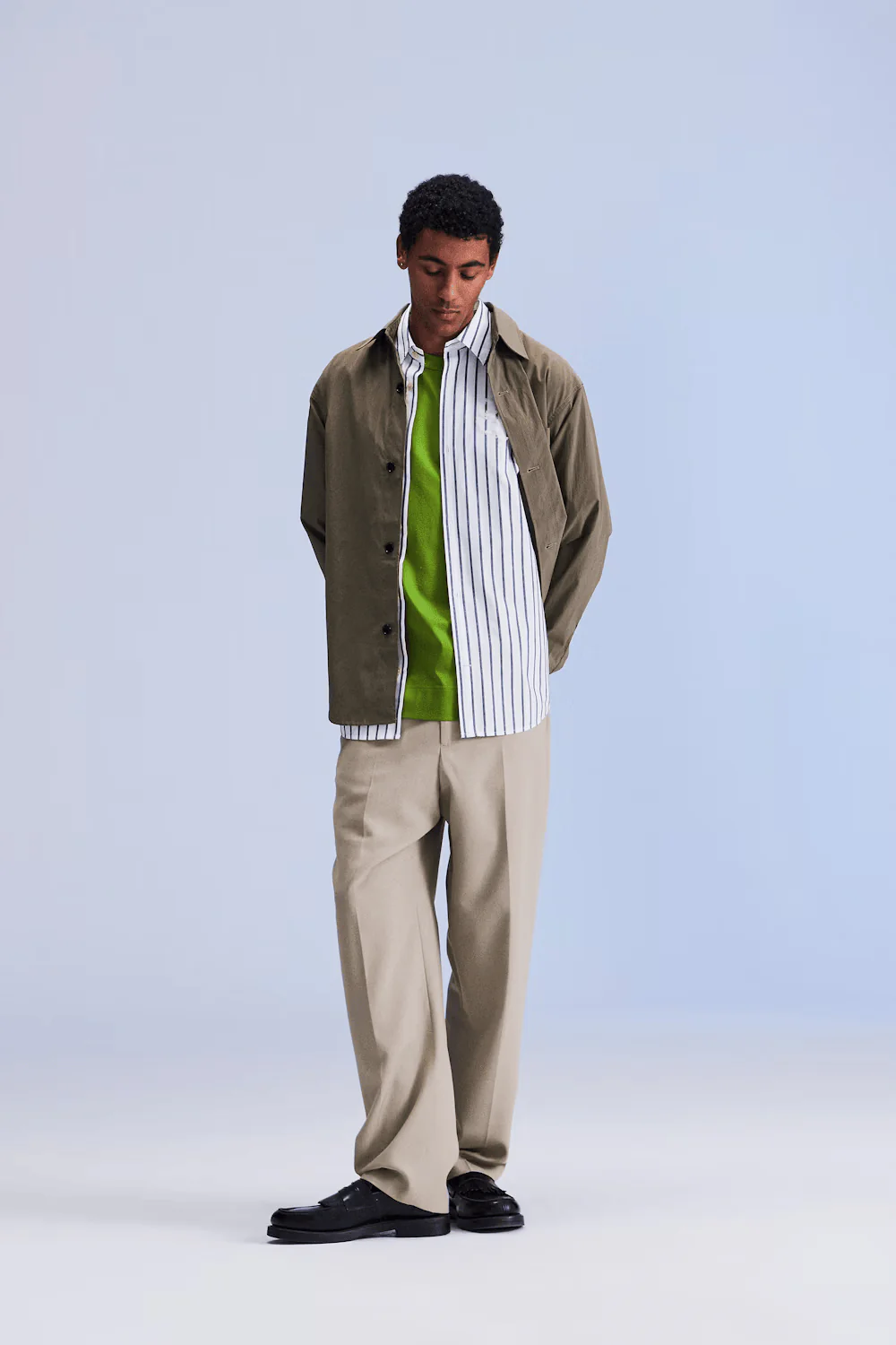 Pantalon habillé au style casual, coupe décontractée et jambe droite, confectionné dans un tissu technique en mélange de laine 180 g/m² avec une touche de stretch pour plus de confort. Il présente une taille haute, une fermeture par agrafe, une ceinture élastiquée et un cordon de serrage pour un ajustement parfait. À la fois élégant […]