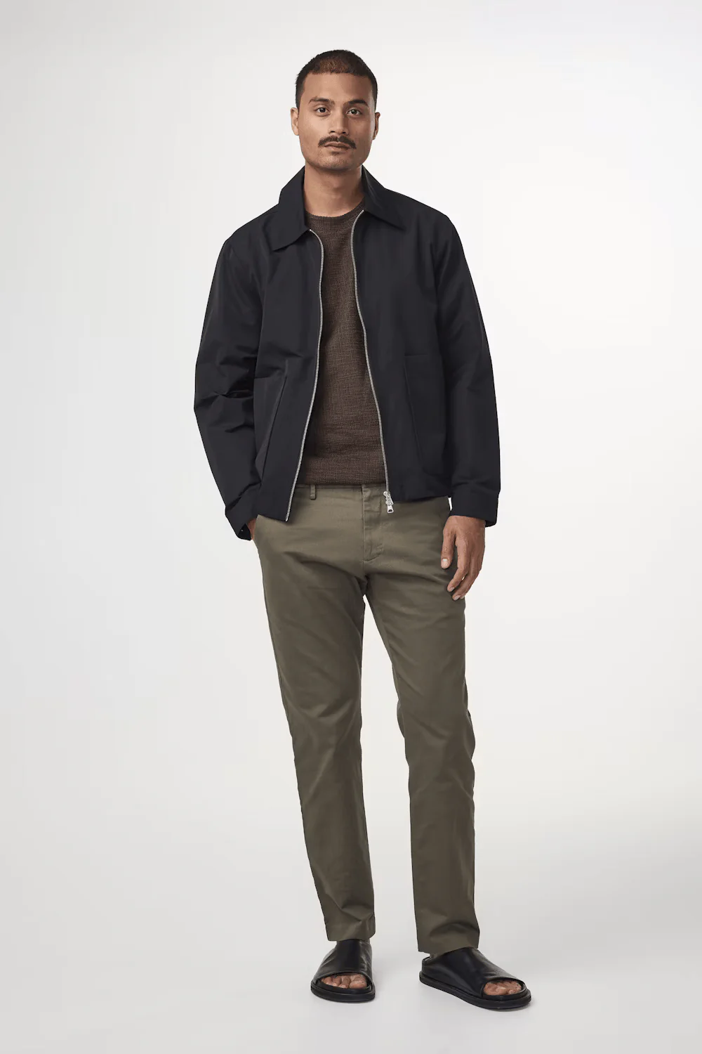 Optez pour un style sophistiqué avec le Slim Tailored Chino, un pantalon à la coupe ajustée et à la jambe fuselée, conçu dans un mélange de coton biologique doux et résistant (260 g/m²). Il se distingue par son pli marqué et son ourlet invisible, offrant une allure raffinée. Ses finitions soignées incluent une fermeture Cobrax à crochet et œillet, ainsi que des poches passepoilées, parfaites pour une touche d’élégance discrète. Un essentiel polyvalent alliant confort et modernité.