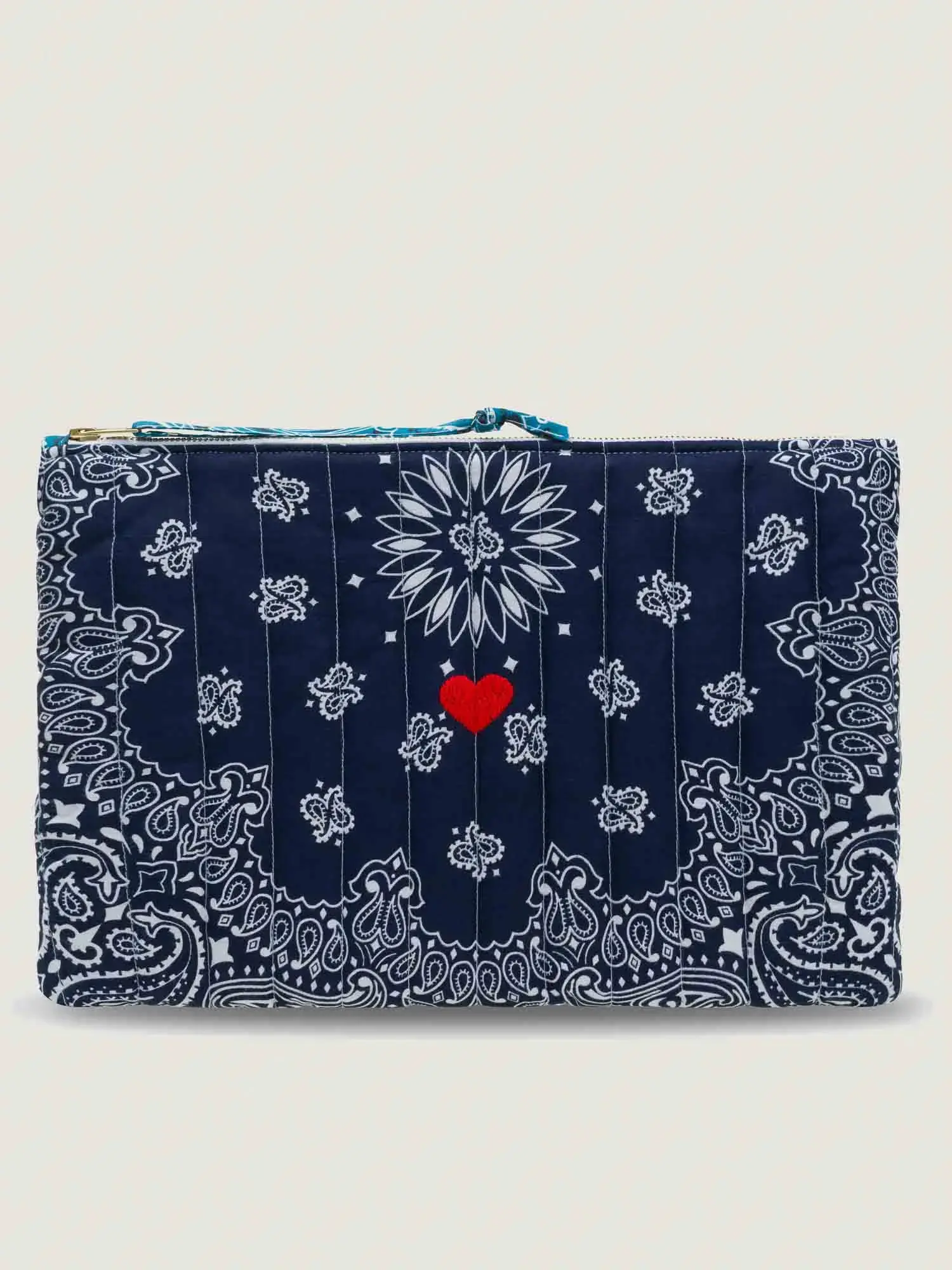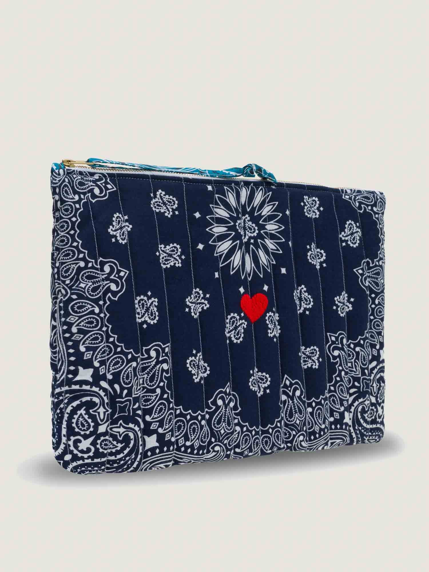 Pochette Matelassée Ordinateur – COEUR – Navy / Pétrole