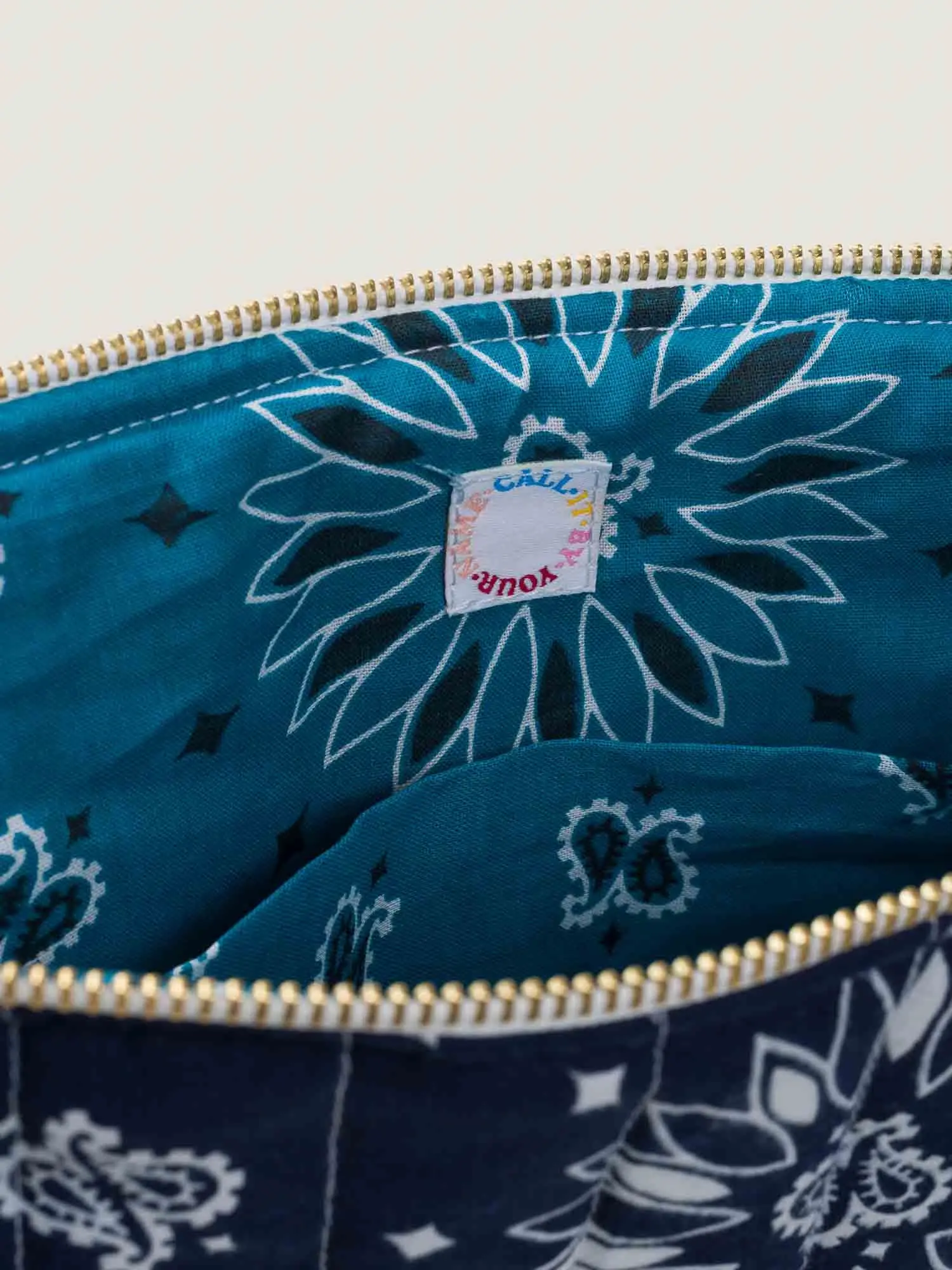 Fermeture à l’aide d’un zip métalisé doré, poche plaquée intérieure.