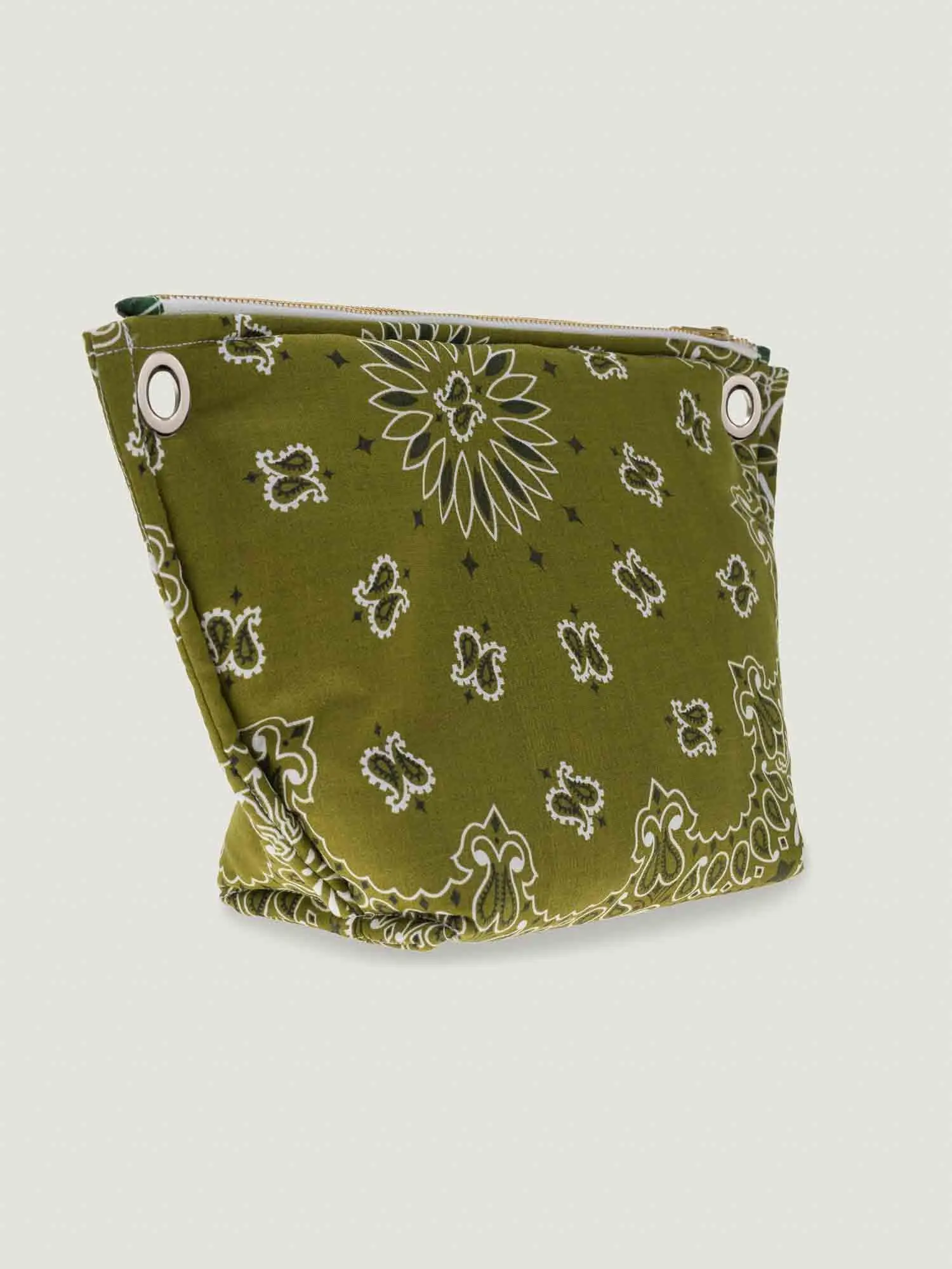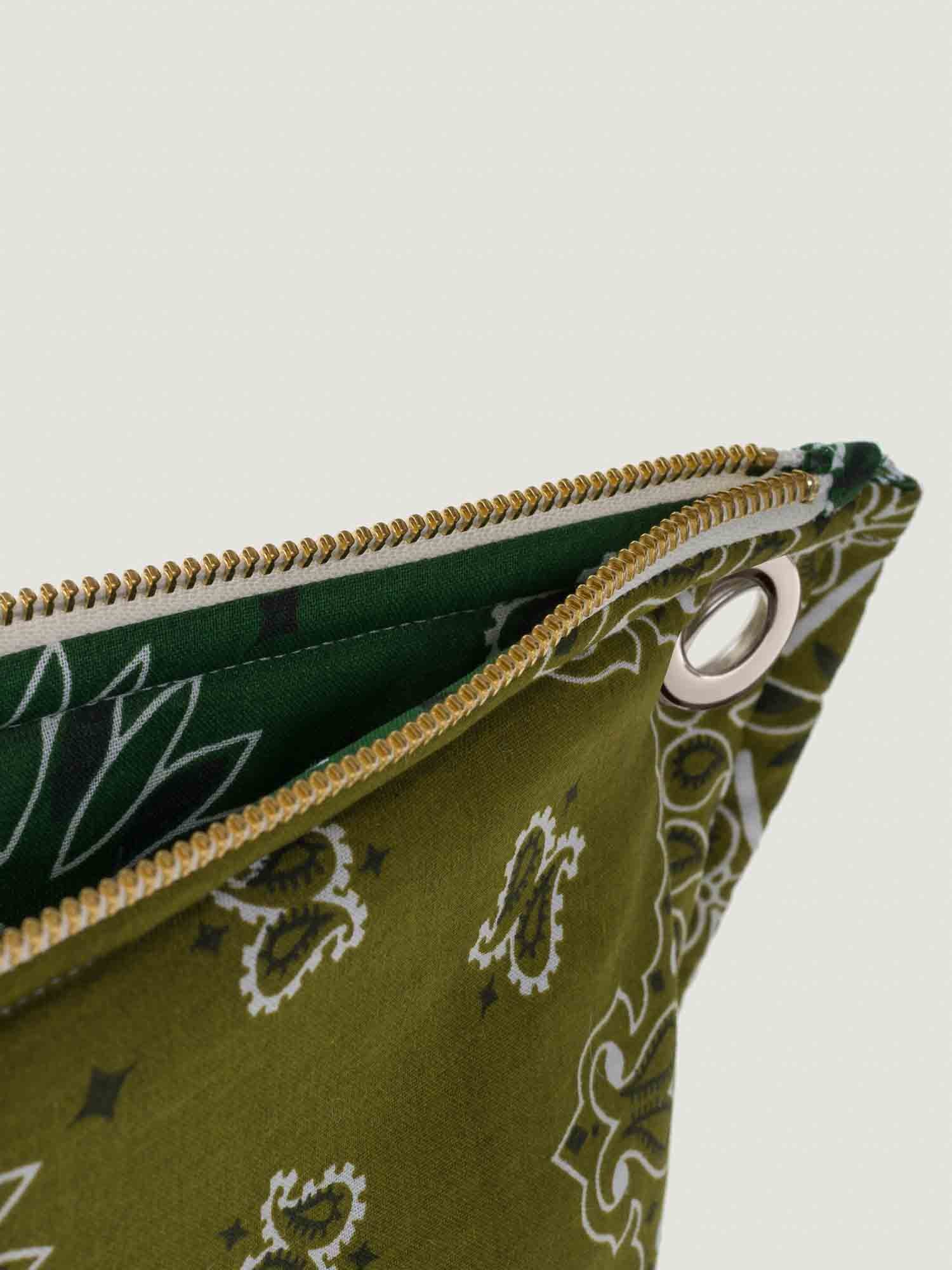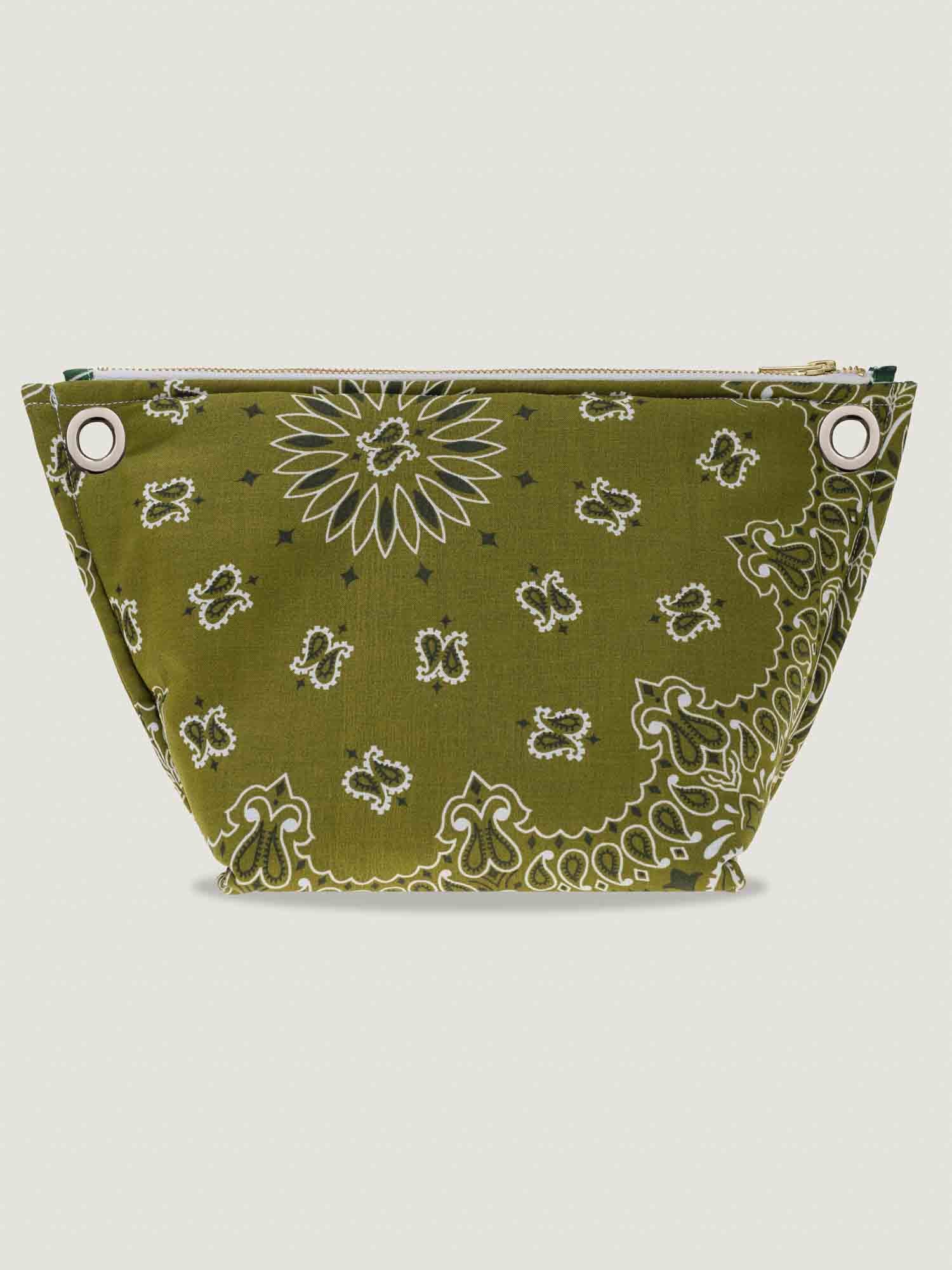 Pochette trapèze à œillets, à porter à la main ou avec une bandoulière.