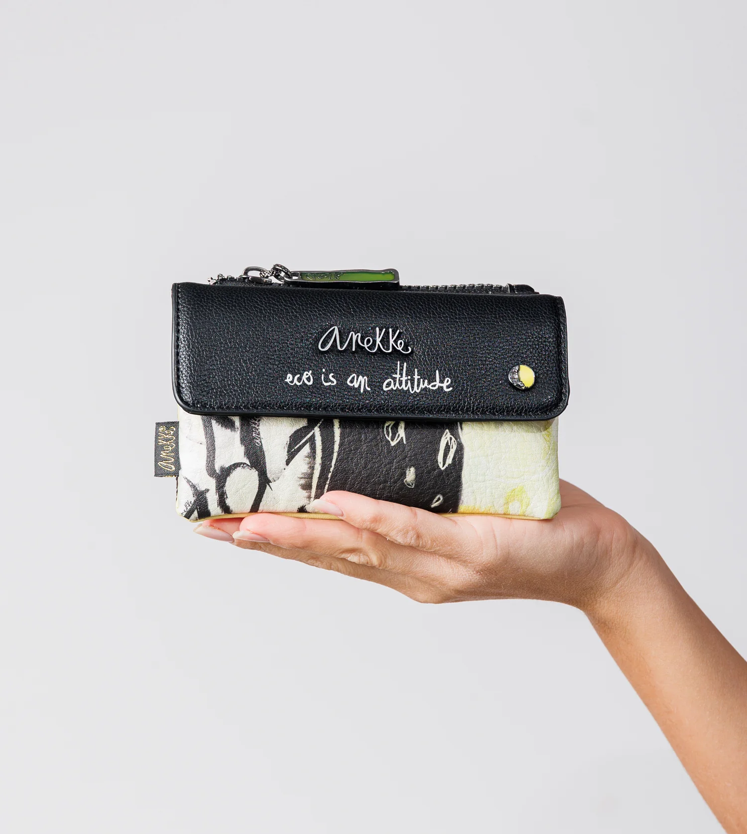 Chaque produit de cette capsule est réalisé avec 80 % de matériaux recyclés et 100 % d’amour pour la planète, portant le label Control Union Certifications B.V. Cette capsule se caractérise par le confort de chaque produit, réalisé avec des matériaux flexibles, parfaits pour le quotidien. Son design combine une base blanche avec des formes abstraites imprimées, inspirées par la silhouette de Towanda, et des touches originales en tons fluo. Ce porte-monnaie comporte un rabat, qui, une fois ouvert, donne accès à deux compartiments. Il dispose d’un autre compartiment avec fermeture éclair. L’intérieur est entièrement doublé. Et vous hésitez encore ? Obtenez dès maintenant votre nouveau favori d’Anekke Towanda, vous allez l’adorer ! Miaou !