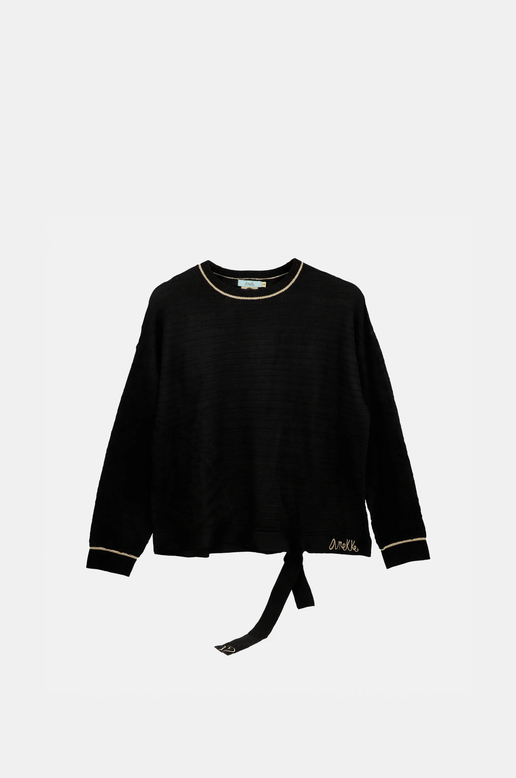 Les basiques sont toujours une valeur sûre. Et ce pull noir à col rond Shōen d’Anekke va devenir l’un de vos nouveaux alliés pour n’importe quel look. Ce pull 100% coton est agréable au toucher. Il présente un design à col rond en noir avec une finition claire en détail sur les poignets et le col. De plus, il comporte un détail de nœud papillon sur le devant. Vous allez l’adorer !