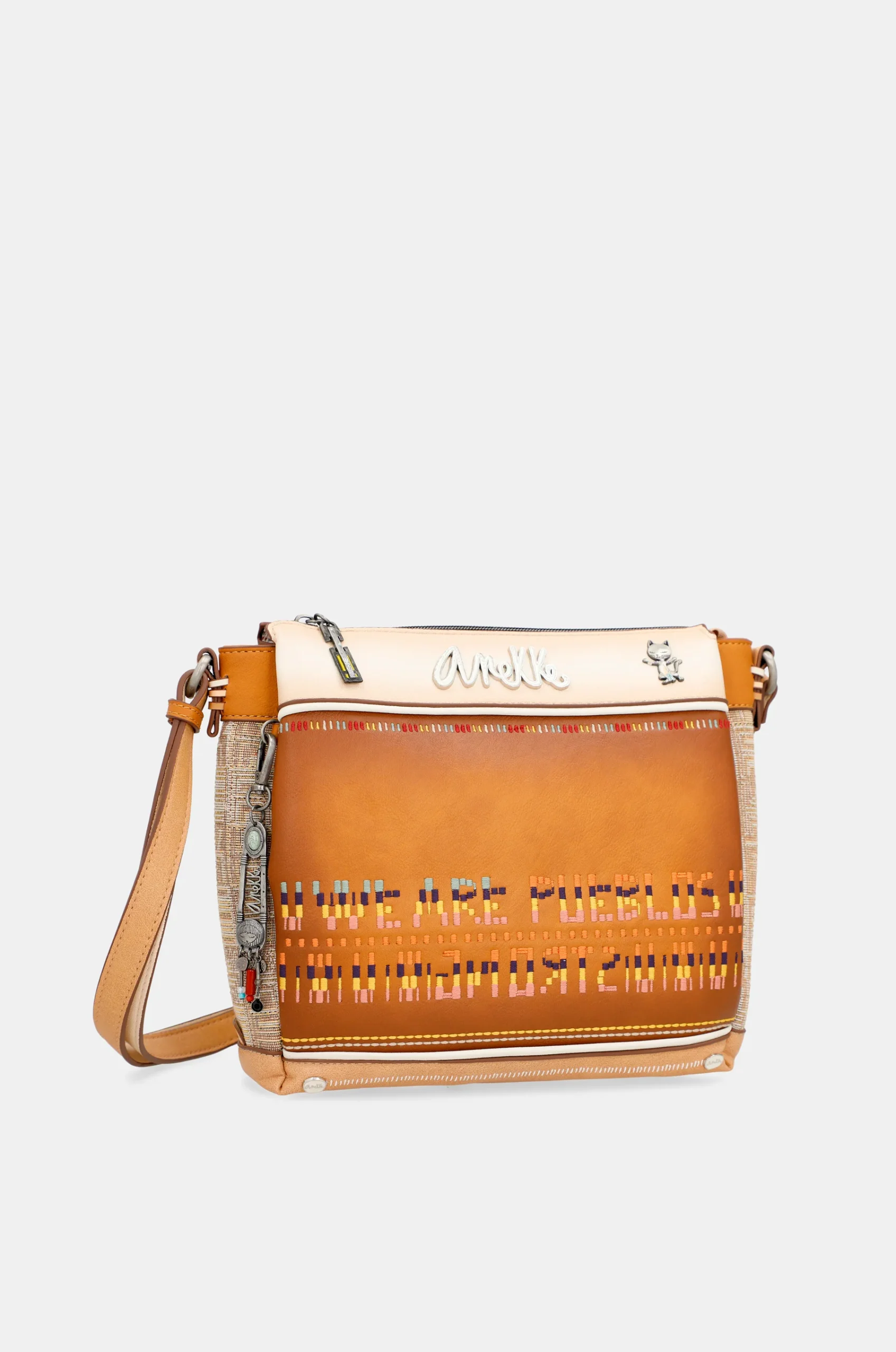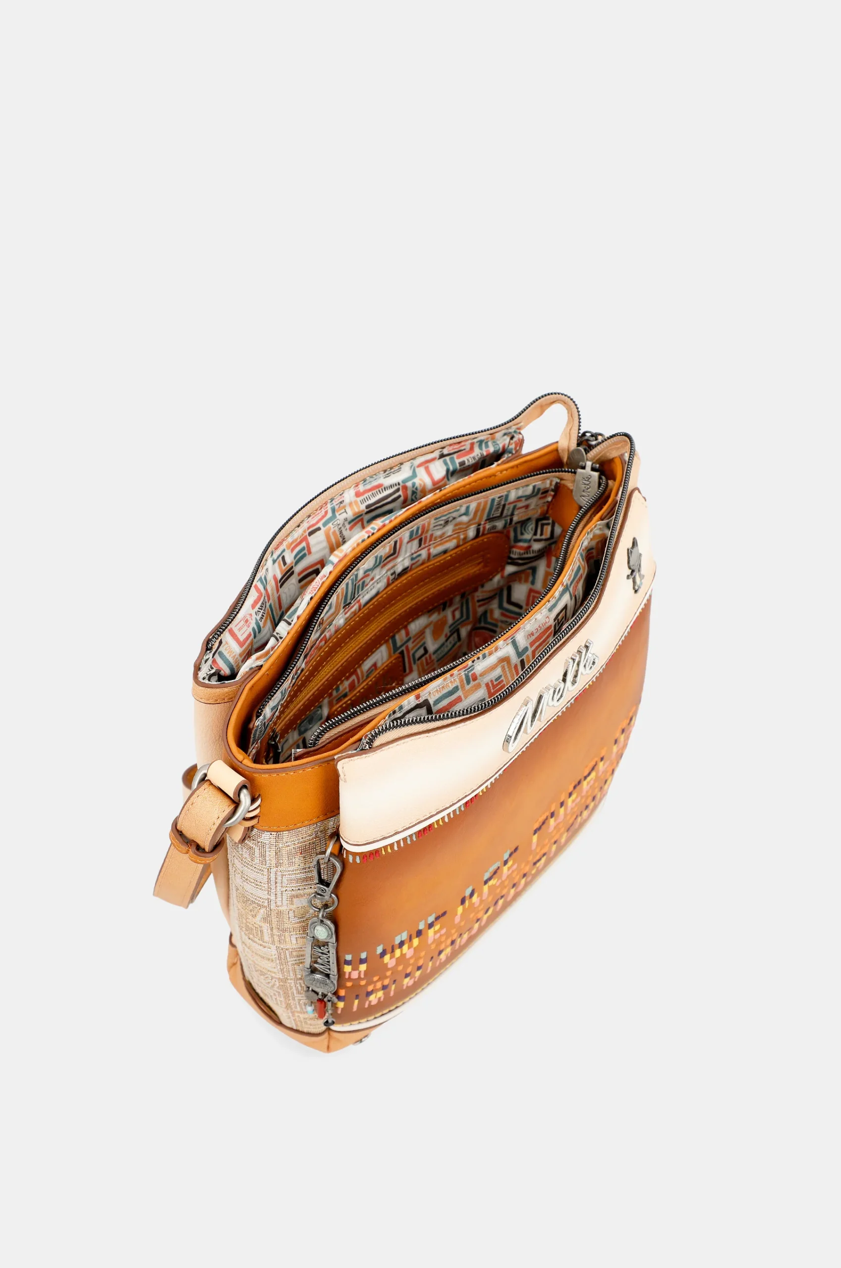 Ce sac croisé Magic Souls avec 3 compartiments fait partie de la collection Anekke Menire, un hommage aux collectifs autochtones des femmes de l’Amazonie, qui ont du mal à préserver leur environnement et leurs traditions.