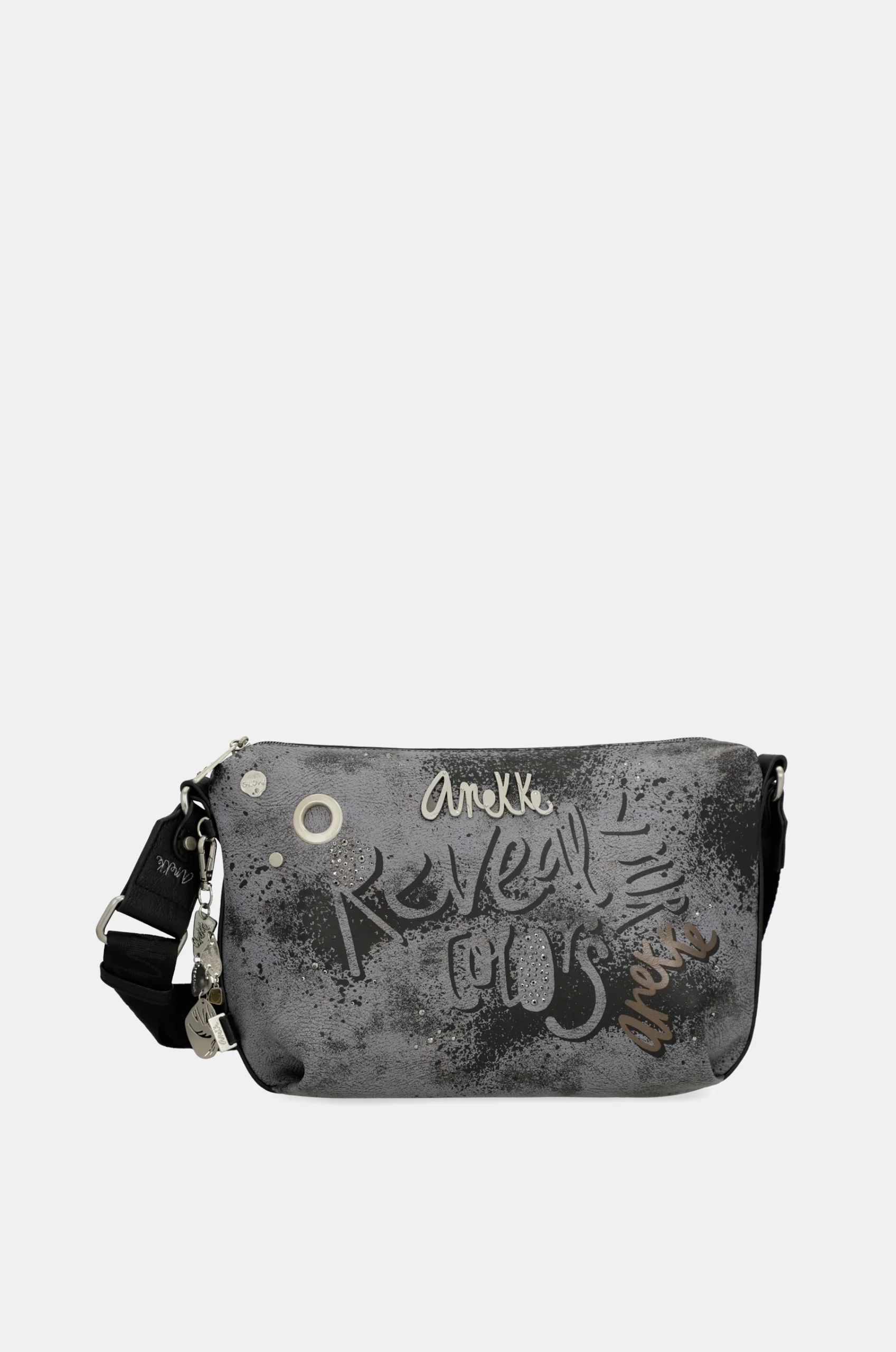 Son design combine une base en noir avec un ton blanc terreux superposé, ce qui crée un aspect rocheux original. Le logo Anekke devient le protagoniste à certains endroits et nous verrons des éléments décoratifs tels que des strass inspirés des fossiles, ainsi que des clous, des tirettes et des pins personnalisés.