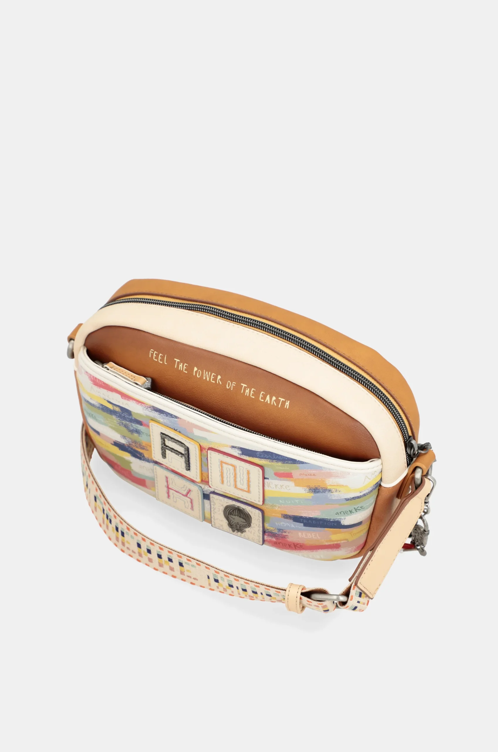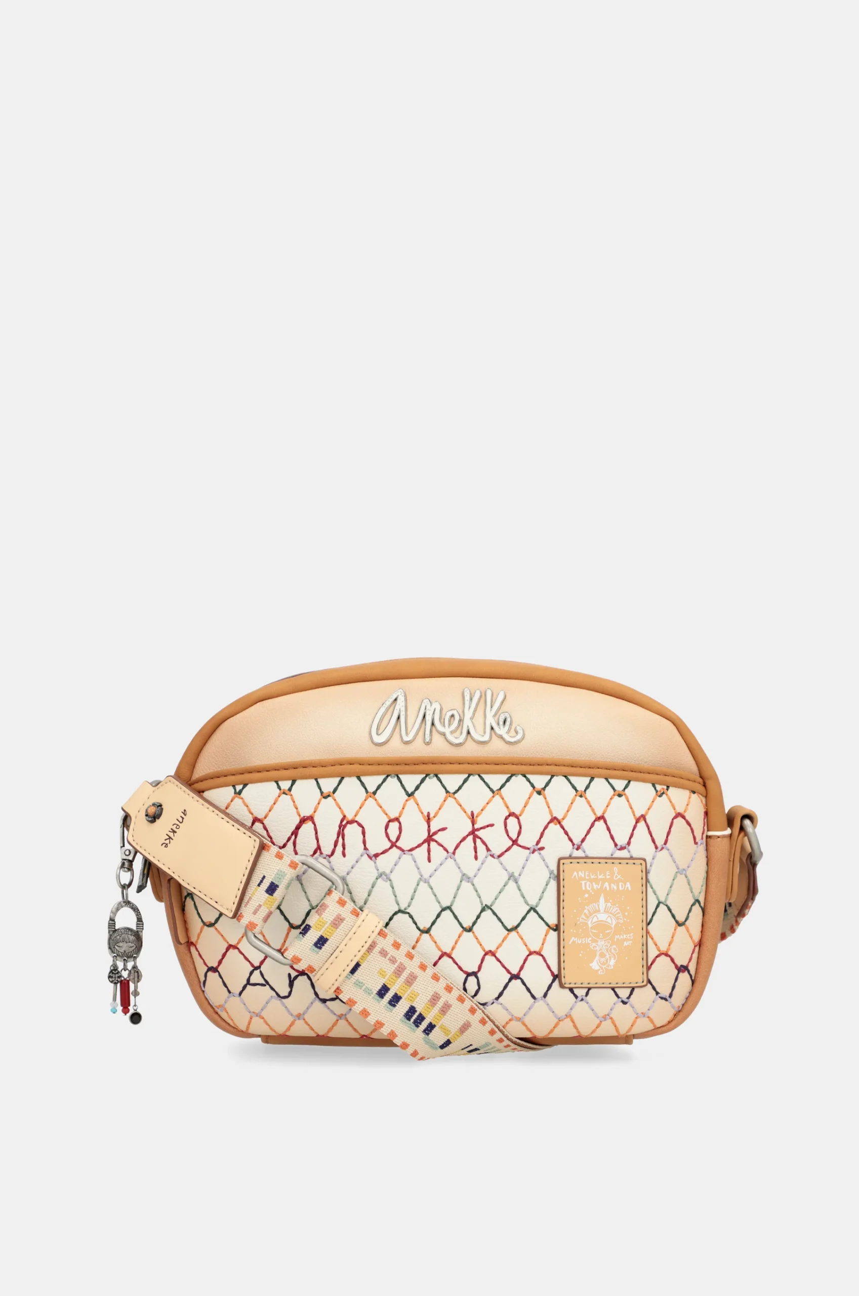Ce sac crossbody ovale Magic Souls fait partie de la collection Anekke Menire, un hommage aux collectifs autochtones des femmes de l’Amazonie, qui ont du mal à préserver leur environnement et leurs traditions.