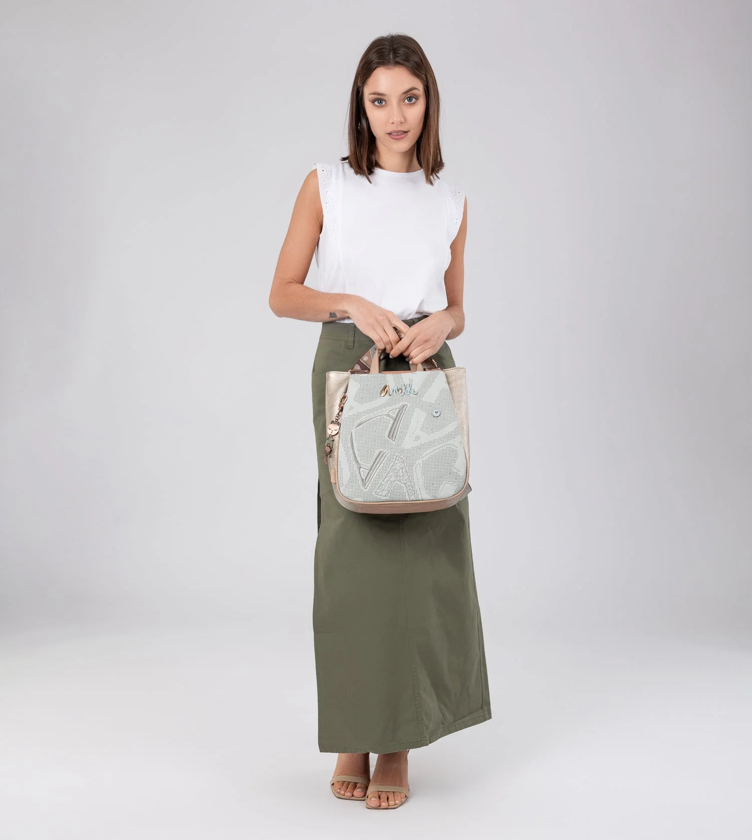 Ce sac de la ligne Passion de la collection Anekke Hollywood se caractérise par ses tons doux combinés en différents blocs, avec des découpes et des broderies qui génèrent des volumes sur des imprimés originaux.
