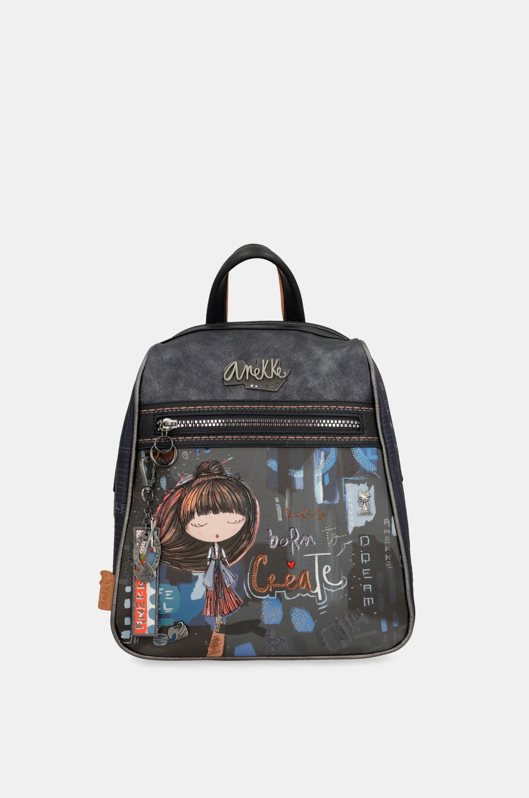 Ce sac à dos de forme triangulaire originale est une taille moyenne et fait partie de la collection contemporaine Anekke. Le sac à dos dispose de deux sangles de sac à dos réglables à différentes longueurs, plus une poignée de saisie pour la main. L’intérieur est doublé et a également une poche avant.