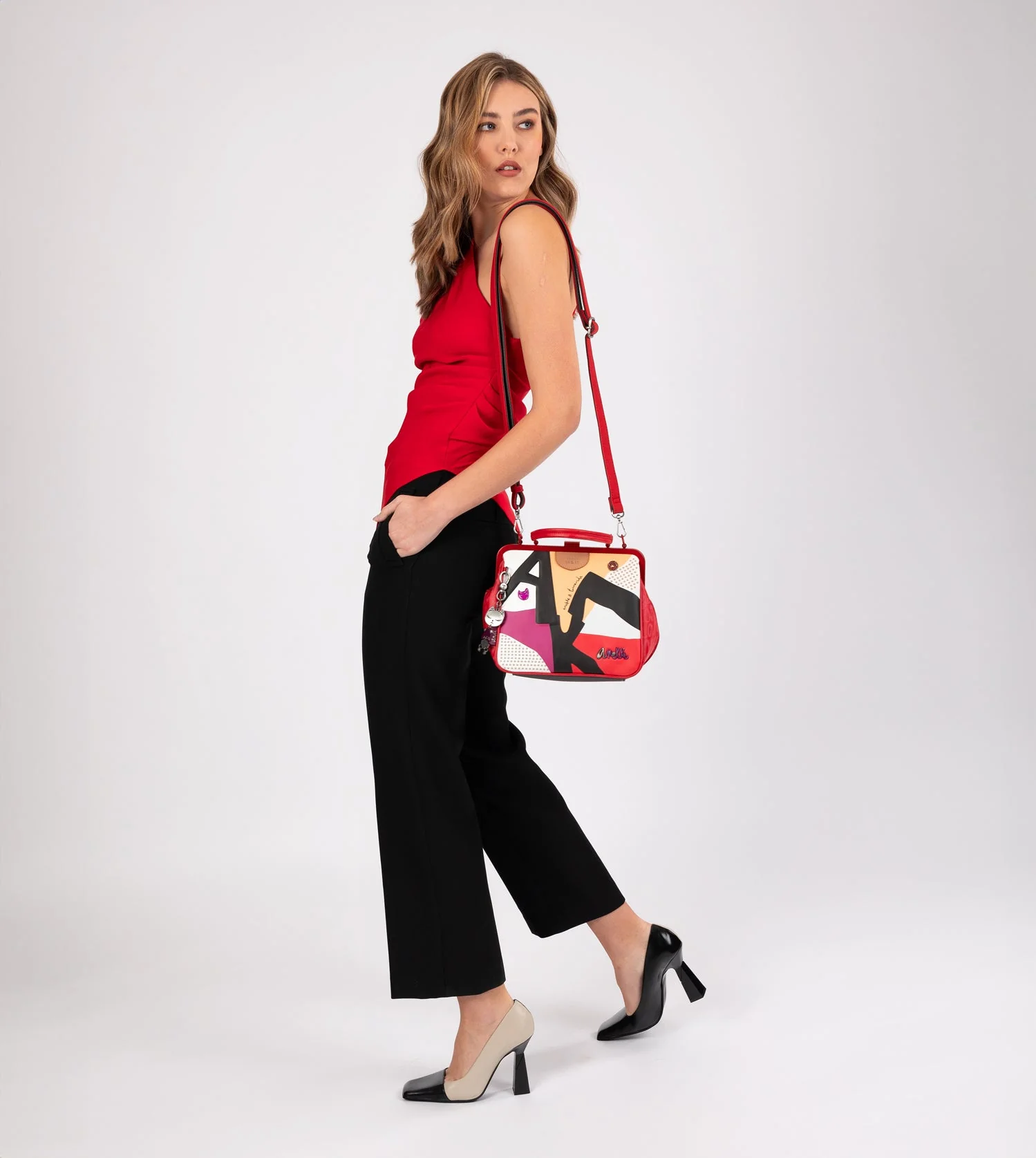 Comme l’a fait Hedy Lamarr, poursuivez vos rêves, cela vous va si bien. Et faites-le accompagnée d’un magnifique accessoire inspiré du glamour du vieil Hollywood, comme celui-ci de la ligne Fashion d’Anekke Hollywood. Avec une conception de style vintage, la tendance color block occupe le devant de la scène à travers une joyeuse combinaison de rouge, de jaune et de violet, contrastant avec les lettres noires A N K d’Anekke.