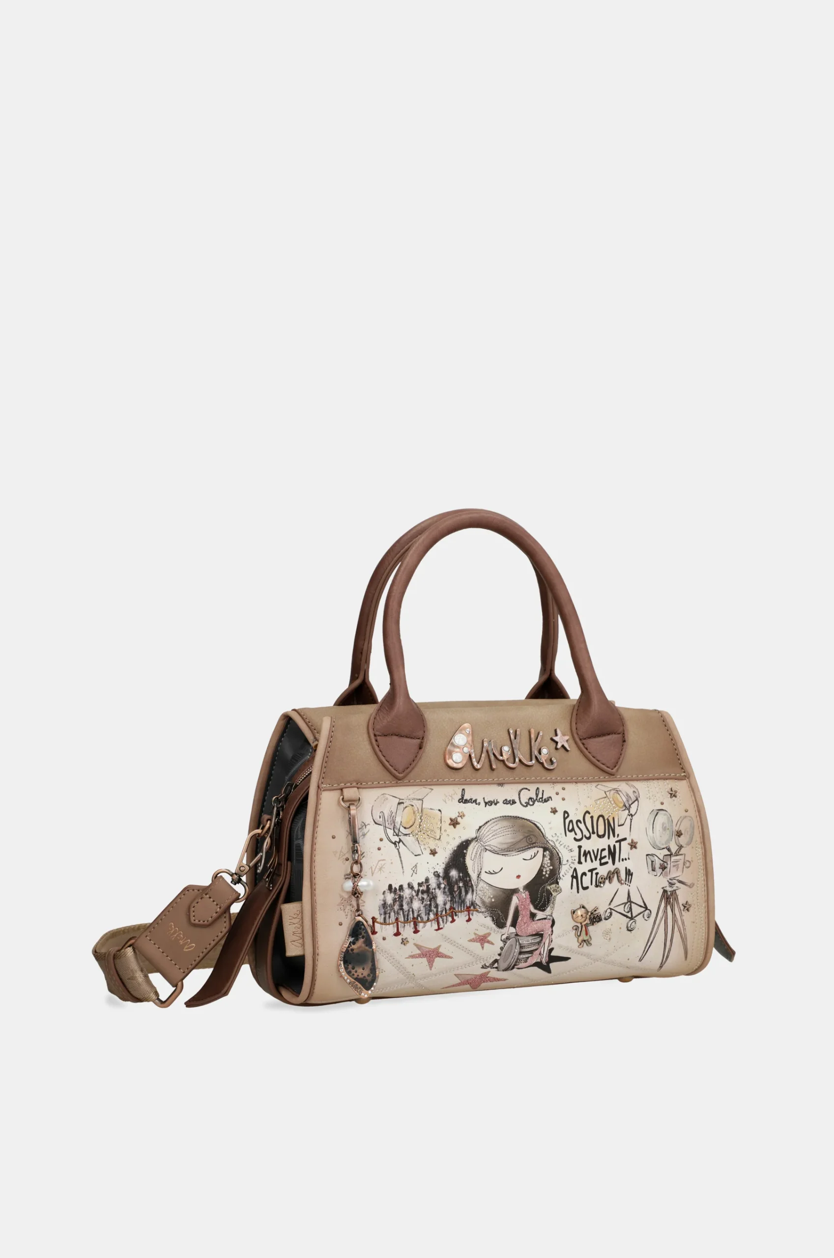 Les détails sont la touche finale : broderies, touches scintillantes, pins en forme d’étoile, logo métallique avec des perles, pin de Towanda en tant que metteur en scène, patchs ou tirettes personnalisées sont quelques-uns des nombreux ornements que vous trouverez dans ce magnifique sac, avec lequel vous vous mettrez dans la peau d’une véritable diva du cinéma classique d’Hollywood. Qu’attendez-vous ? Choisissez le vôtre dès maintenant !