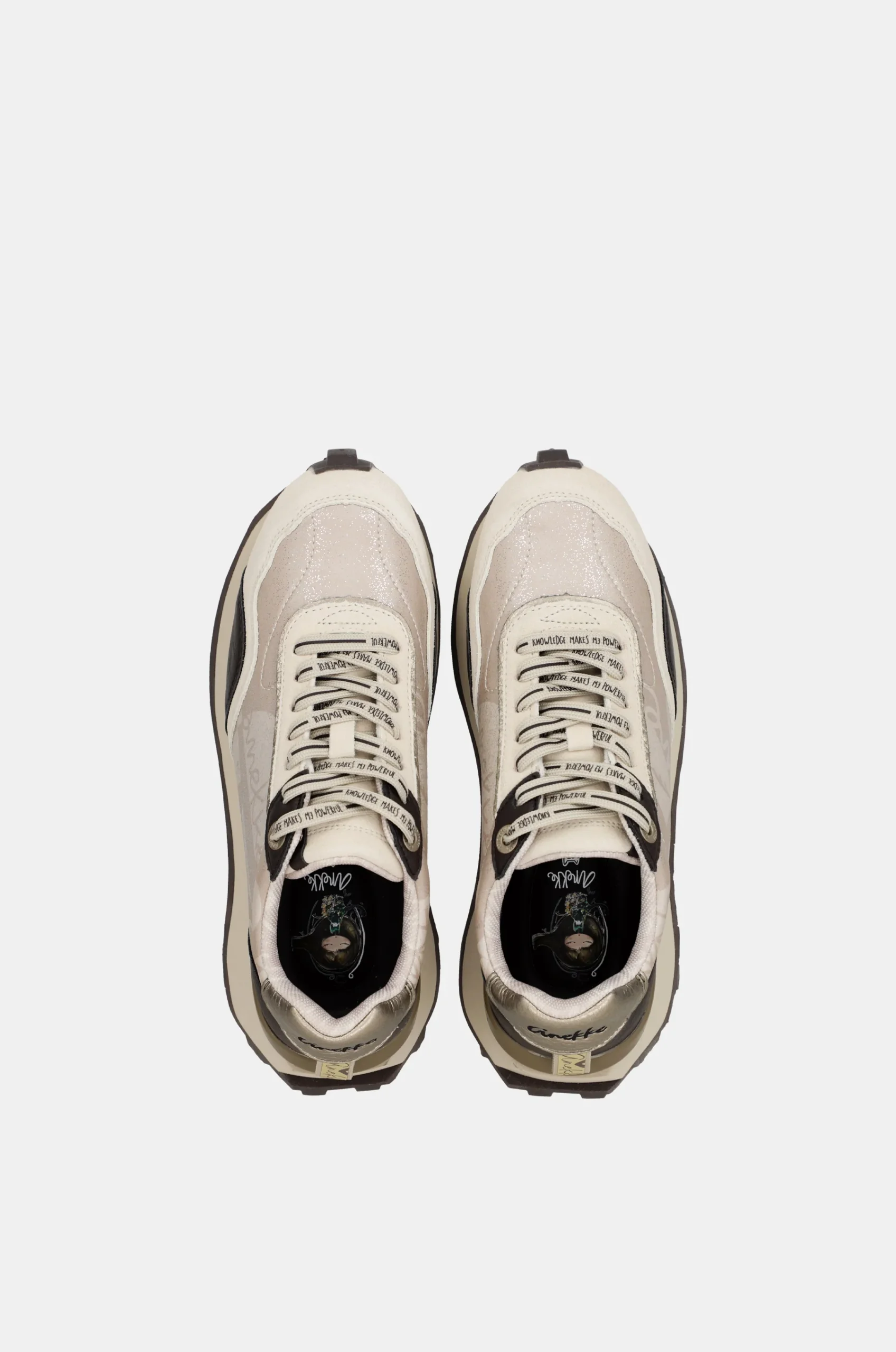 Les baskets Anekke, dans des tons beiges rehaussés de détails cuivrés et marron, forment une combinaison chaleureuse et sophistiquée, synonyme d’élégance et d’harmonie. Leur design, avec une semelle crantée, offre une excellente adhérence et une grande légèreté, idéales au quotidien. La semelle intérieure amovible et rembourrée assure un confort optimal, tandis que l’intérieur arbore l’imprimé exclusif de la collection. Les lacets à inscription et les détails métalliques apportent une touche distinctive, faisant de ce modèle une pièce unique, imprégnée de tout le charme et de l’essence d’Anekke.