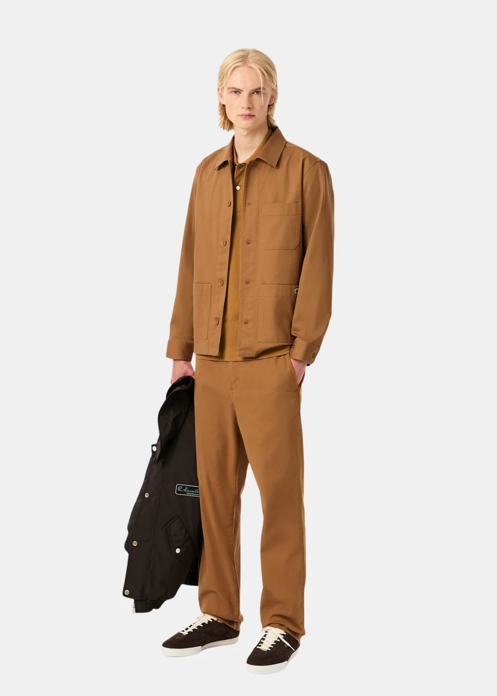 Ses trois poches plaquées fonctionnelles, sa fermeture à boutons silicone ton sur ton et son crocodile iconique brodé cousu sur la poche gauche en font une pièce versatile, parfaite pour superposer vos looks.