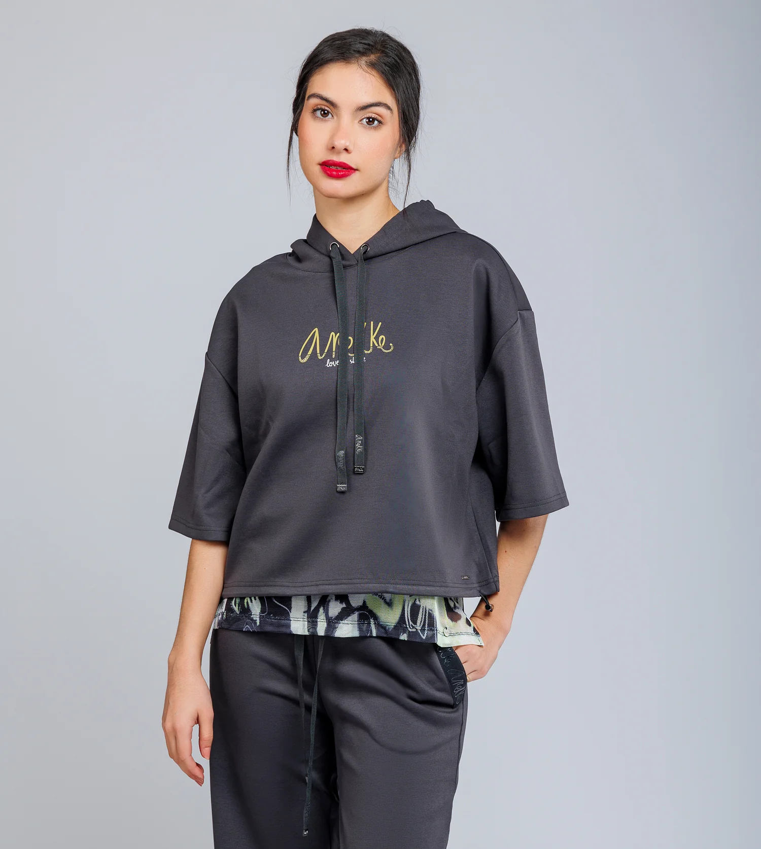 Ce hoodie gris avec un logo sur le devant va devenir votre pièce préférée cette saison. Il dispose d’une capuche ajustable et de zips sur les côtés pour un meilleur ajustement.