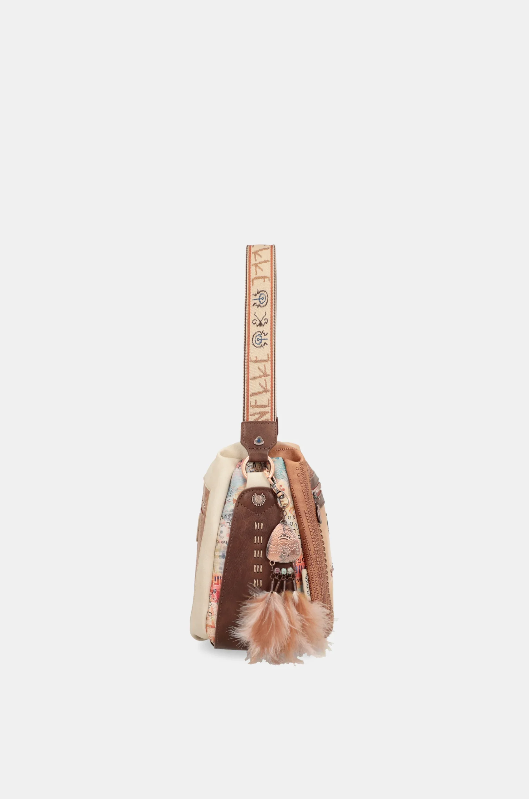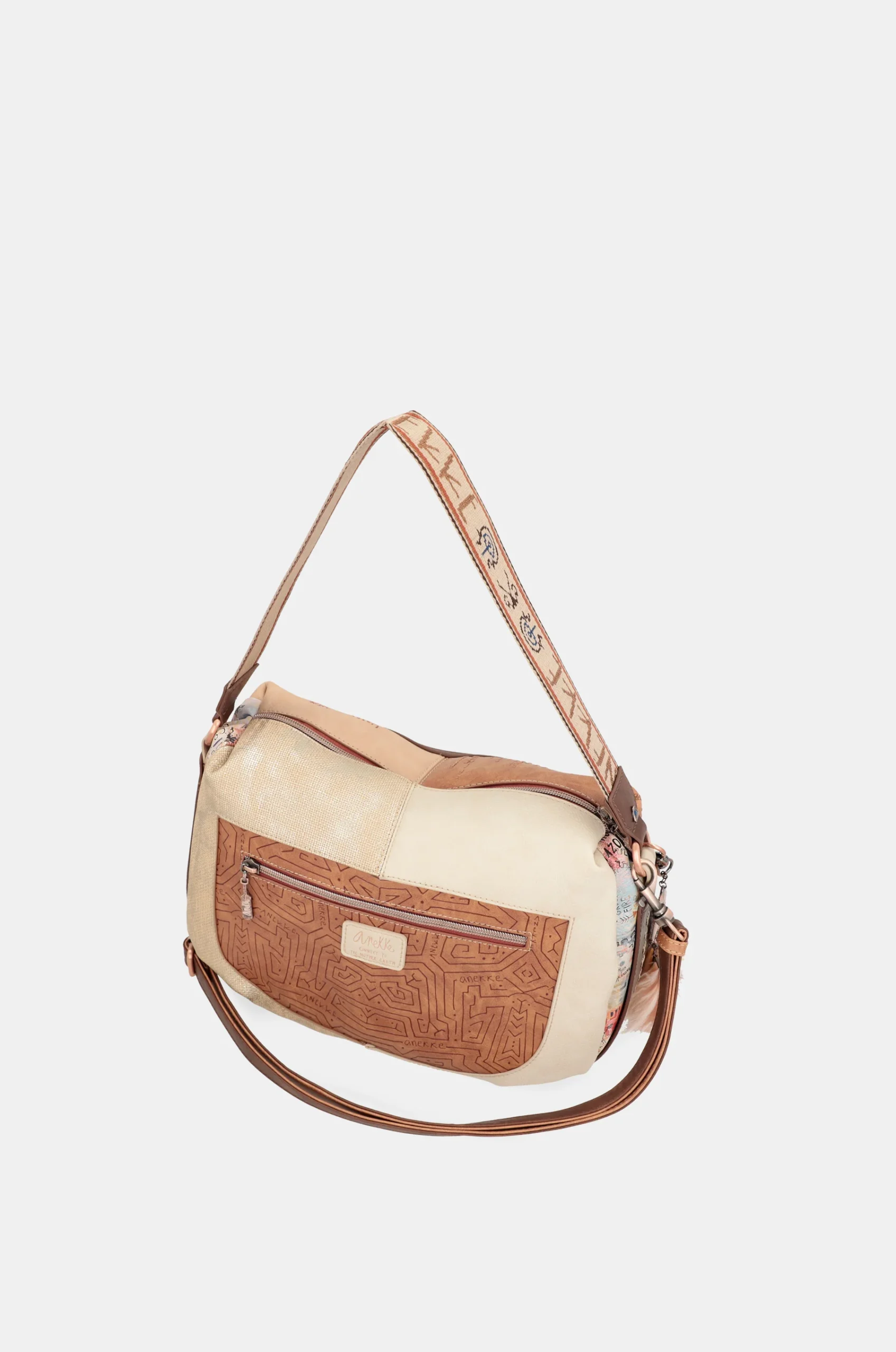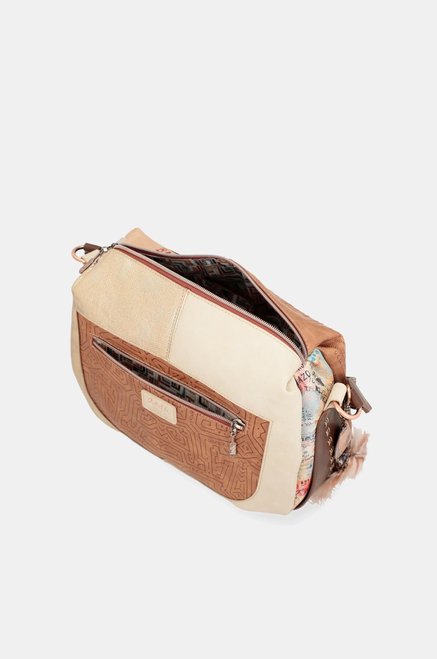 Ce grand sac à bandoulière de tribu avec bandoulière fait partie de la collection Anekke Menire, un hommage aux collectifs autochtones des femmes de l’Amazonie.