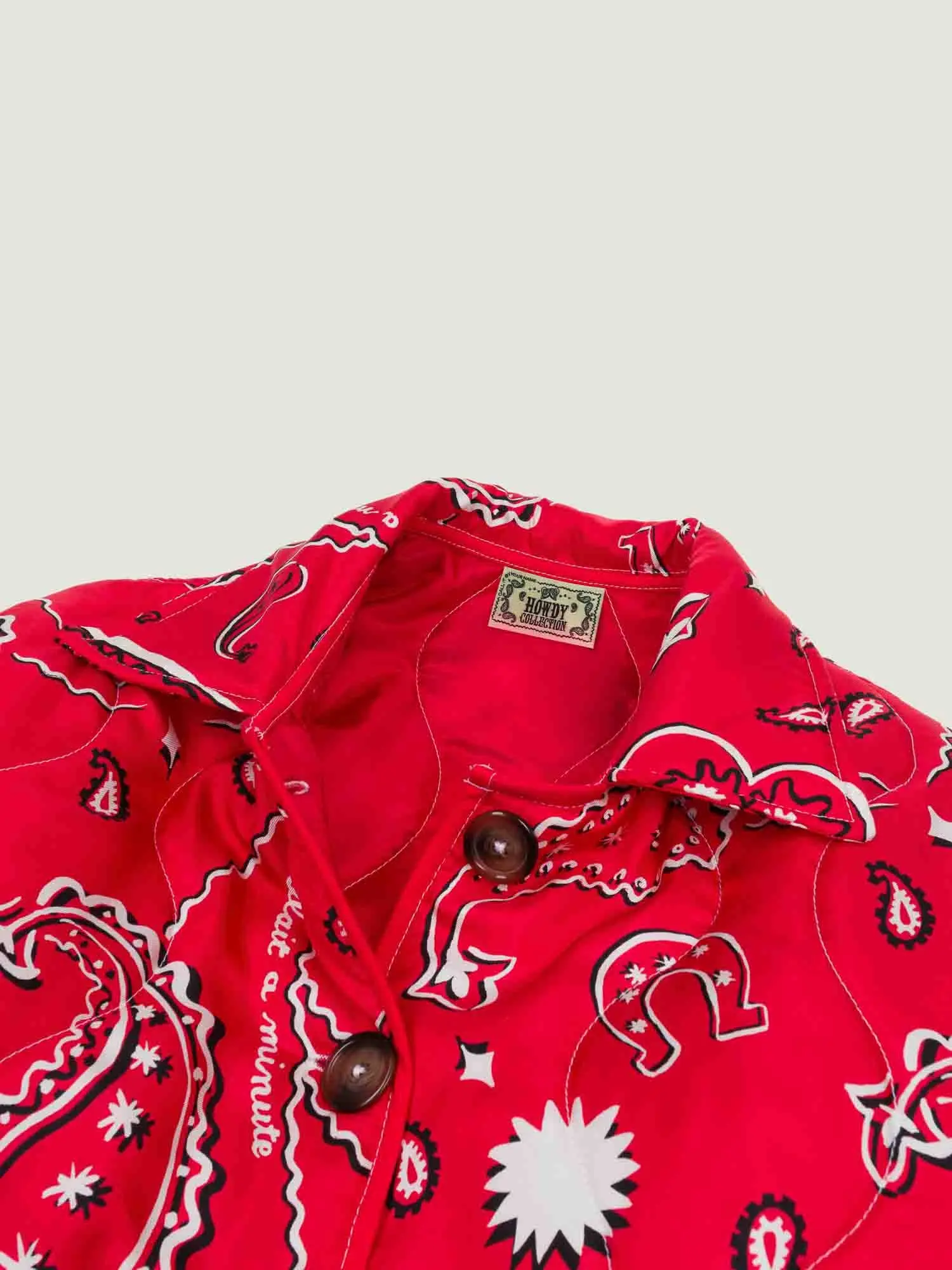 Veste matelassée 100% soie imprimée HOWDY COLLECTION coloris rouge.