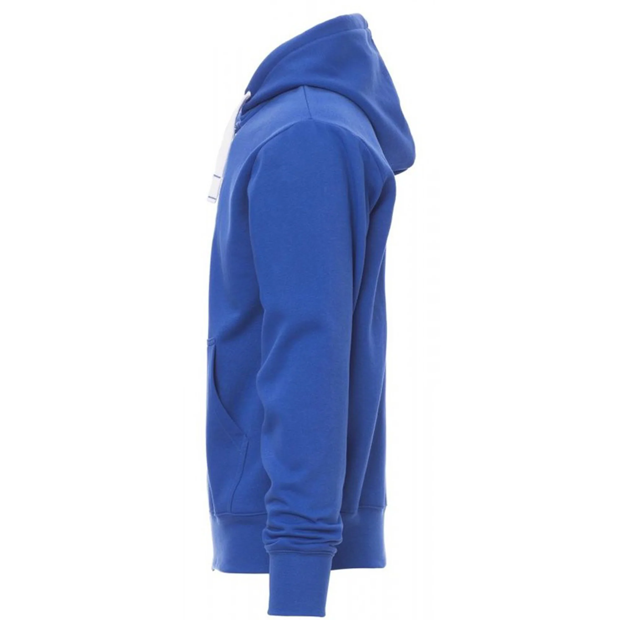 Veste Full Zip Unisexe. 280gr/m² 70 % Coton / 30 % Polyester. Sweat-shirt unisexe, à fermeture éclair intégrale à un seul curseur en métal, capuche, coulisse en corde avec coutures assorties au sweat-shirt, manches montées, poches kangourou, poignets et taille à côtes élastifiées.